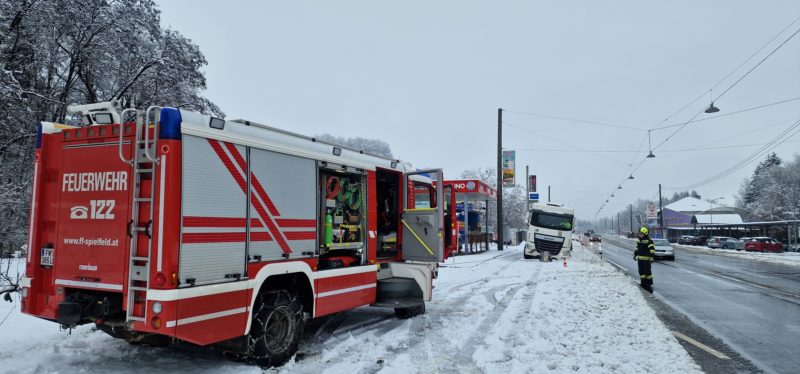 Am 16.01.2023 um 10:15 Uhr wurde die Freiwillige Feuerwehr Spielfeld zu einem Verkehrsunfall (T03-VU-Berg-Öl) in den Ortsteil Spielfeld, Bundesstraße 67, Marc`s Drive In, LKW-Bergung, Gemeinde Straß in Steiermark, alarmiert. Die Freiwillige Feuerwehr Spielfeld rückte mit RLF-A2000 und LKWA mit 6 Mann zum Einsatzort aus.