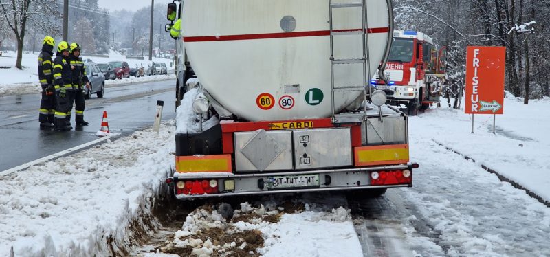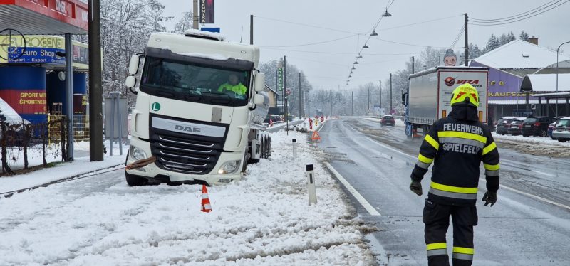 Ein leerer Tankwagen Auflieger mit Zugmaschine wollte auf der rechten Straßenseite parken und übersah dabei den neu errichteten Grünstreifen zwischen der Bundesstraße und Radfahrweg. Das vorhergenannte Zugfahrzeug vergrub sich im Grünstreifen mit der Vorder- bzw.  Hinterachse der Zugmaschine im Erdreich, sodass eine Weiterfahrt per eigener Achse nicht möglich war. Die FF Spielfeld zog mit der Seilwinde des RLFA2000 die Zugmaschine samt Tankwagenauflieger wieder auf die befestigte Straße, sodass dieser die Fahrt per eigener Achse wieder fortsetzen konnte. Beschädigt und verletzt wurde am Einsatz nichts und niemand. Nach Aufnahme aller Zulassungs- und Versicherungsdaten, rückte die FF Spielfeld um 11:45 Uhr in das Rüsthaus ein und meldete ihre Einsatzbereitschaft bei der LLZ Steiermark zurück.