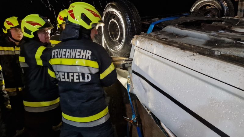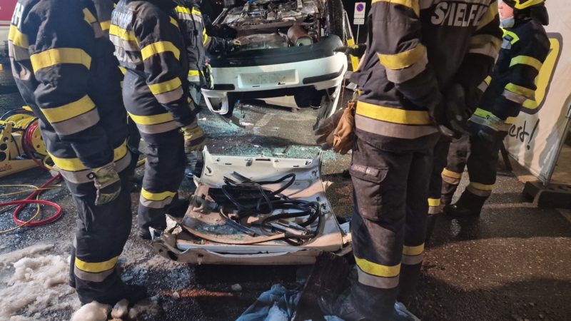 Nach Trennen des Autodaches, wurde die verunfallte Person mit samt dem Autodach aus der Gefahrenzone herausgezogen und den Rettungskräften zum Abtransport ins nächstgelegene LKH bzw. UKH übergeben.