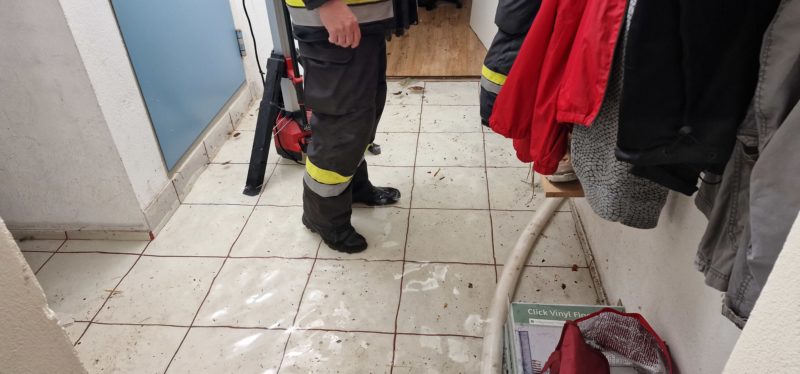 Am Mittwoch, dem 15.02.2023 wurden wir zu einem Wasserrohrbruch alarmiert. Laut Alarmierung standen nach einem Rohrbruch an der Hauptwasserzuleitung, 4 Kellerräume unter Wasser. Die Hausbesitzer waren ca. 2 Stunden auf Besuch bei Freunden. Nach deren Rückkehr wollten sie die Garage, die elektrisch betrieben wird, öffnen. Anschließend bemerkten sie, dass im gesamten Keller und Wohnbereich kein Licht brennt. Bei näheren hinschauen, bemerkten sie, dass eine größere Menge an Wasser unterhalb des Garagentores, ins Freie floss. Sofort versuchten die Hausbesitzer den Wasseraustritt zu lokalisieren. An der Hauptwasserzuleitung hat sich ein Pfropfen gelöst, sodass sich in den 2 Stunden Abwesenheit der Hausbesitzer ein ca. 5 cm hoher Wasserstand in den Kellerräumen ansammelte. Die Hauseigentümer drehten den Wasserhahn von der Wasserversorgungsleitung ab und alarmierten daraufhin den Notruf der Feuerwehr. In der Zwischenzeit wurde auch der Notdienst des Wasserverbandes Leibnitz verständigt, der auch kurz darauf eintraf um den Schaden an der Hauptwasserversorgungsleitung zu reparieren. Unsere Tätigkeit bestand darin, das Wasser mittels Nasssauger aufzusaugen und mit Tauchpumpen ins Freie zu pumpen. Nach 2 Stunden Einsatz rückte die FF Spielfeld in das Rüsthaus ein und meldete ihre Einsatzbereitschaft um 22:00 Uhr bei der LLZ Steiermark zurück.