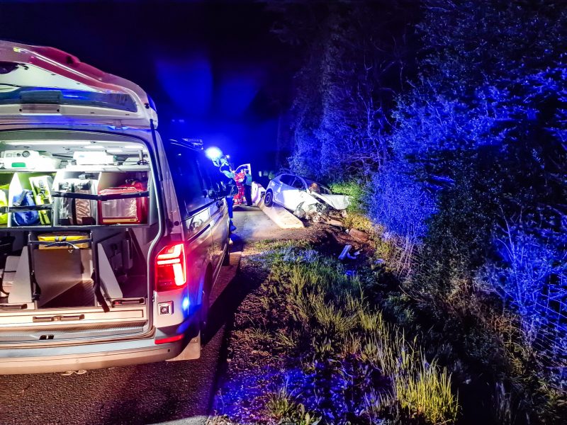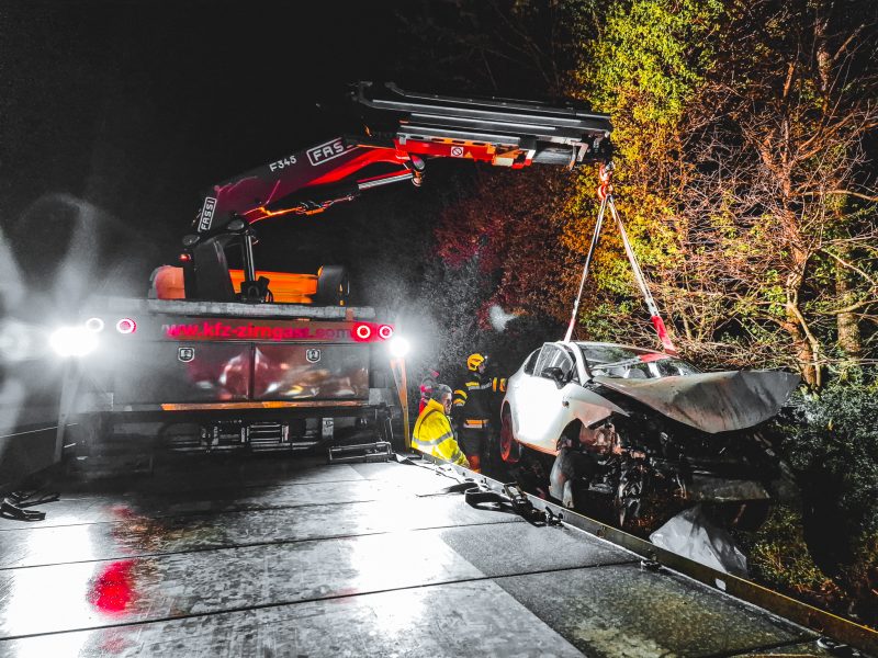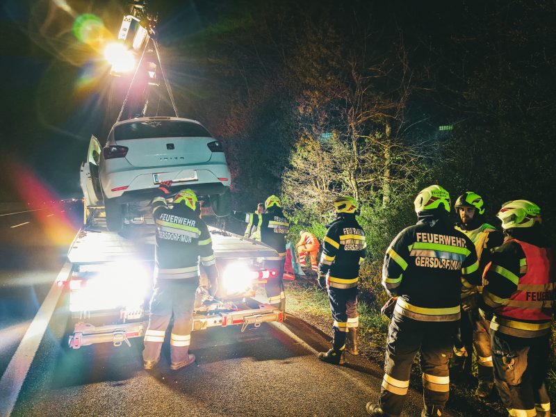 Nachfolgend trafen auch Polizei und Asfinig mit jeweils 2 Mann am Unfallort ein. Aufgaben der beiden Feuerwehren bestand darin: “die Ausgelaufen Flüssigkeiten zu binden, herumliegende Fahrzeugteile einzusammeln und nach Eintreffen des Abschleppunternehmers bei der Bergung des PKWs mithelfen”.