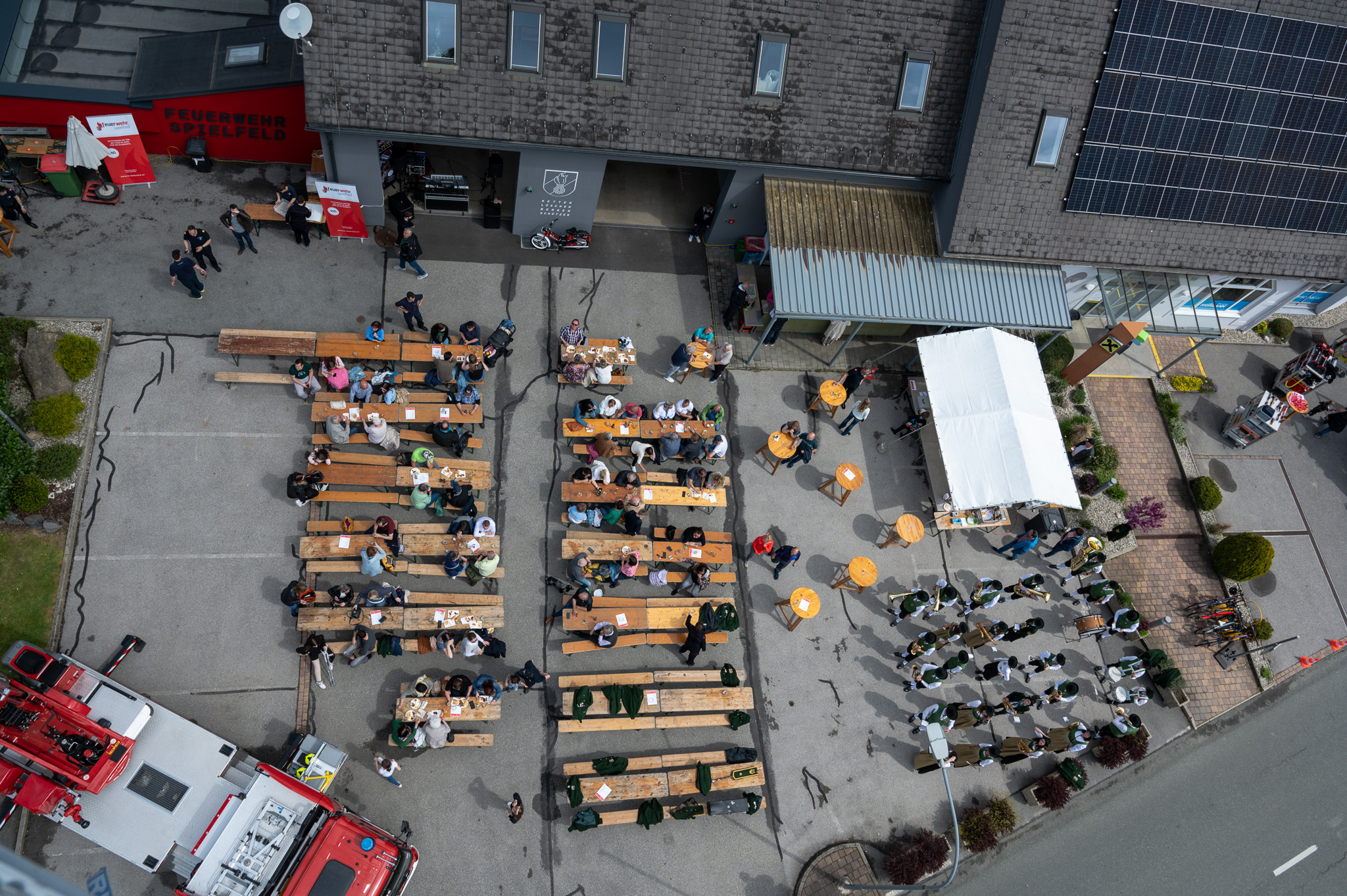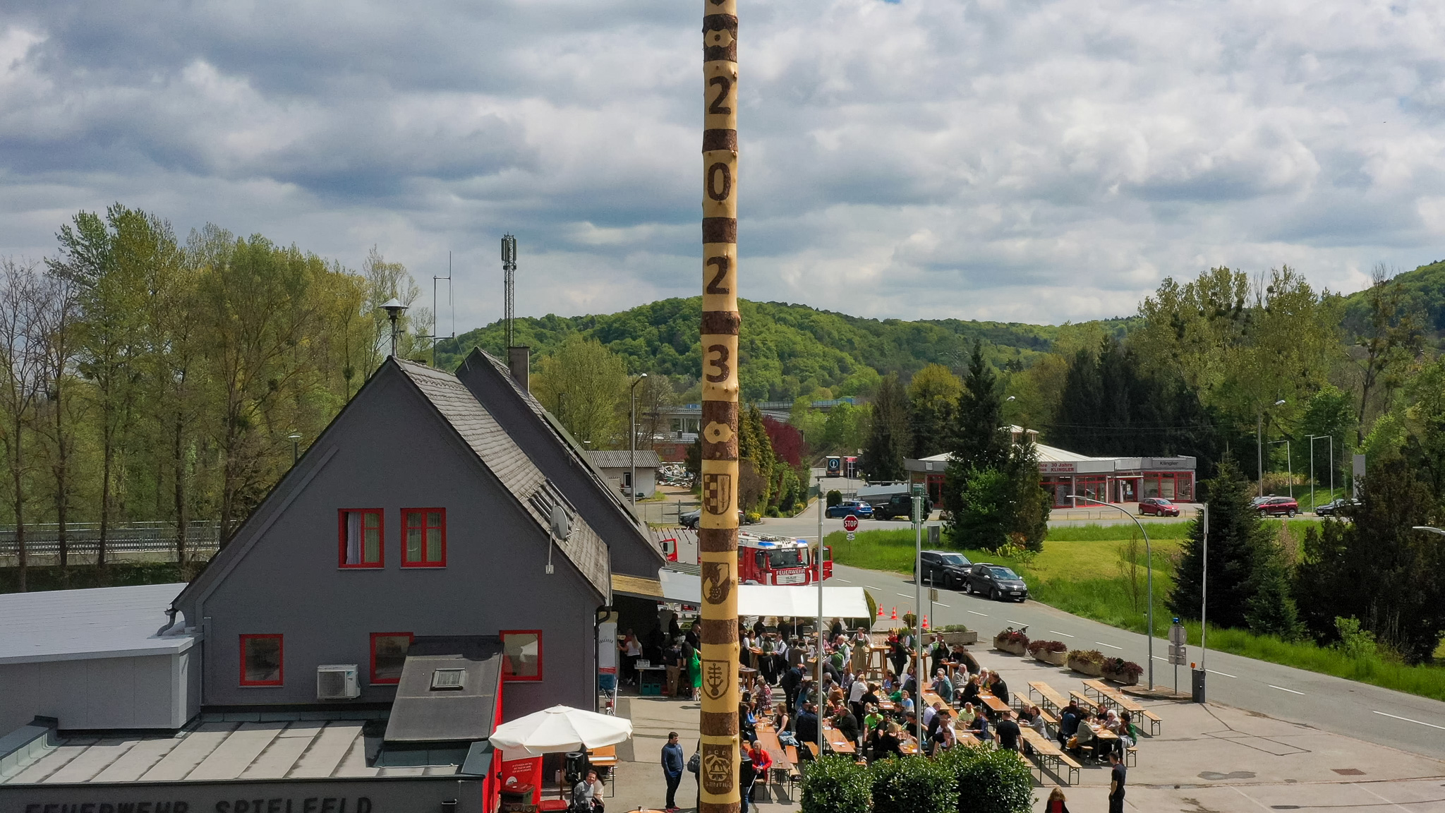 Traditionell am 30. April hat auch die Feuerwehr Spielfeld ihren Maibaum mit (fast) purer Manneskraft aufgestellt. Unterstützung erhielten Sie von der Fa. Hirzmann mit ihrem Krahn. Ohne Zwischenfälle stand nach einiger Zeit der rund 36 Meter hohe Baum am Platz vor dem Rüsthaus der FF Spielfeld. Gespendet wurde der Baum von der Familie Buschenschank Trummer. Musikalisch unterstütz wurde auch das Maibaumaufstellen vom Musikverein Spielfeld. Die zahlreichen Gäste wurden dabei mit unterschiedlichsten Speisen verköstigt und konnten bei der anschließenden Verlosung mit ein wenig Glück einen der tollen Preise und den Maibaum gewinnen. Die Freiwillige Feuerwehr der Stadt Leibnitz stellte ihre Drehleiter zur Schau und einige Besucher hatten auch die Möglichkeit mit der Drehleiter aus schwindelten Höhe das Geschehen zu beobachten. Eine FF-Gruppe mit ABI Daniel Petrovic führten eine Fettbrand-Bekämpfung vor, wo Interessierte Besucher selbst einen Feuerlöscher in die Hand nehmen durften um das Feuer zu löschen. Danach gab es von der Jugendfeuerwehr ein Szenarium, wo ein Holzstapelbrand gelöscht wurde. Für musikalisch Stimmung der Besucher sorgte die ONE MAN BAND Martin Leitinger. Die FF Spielfeld bedankt sich bei den zahlreichen Besuchern des traditionellen Maibaumaufstellens.