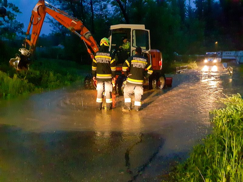 Die Freiwillige Feuerwehr Spielfeld wurde am Dienstag, dem 16.05 von 19:23 bis 21:45 Uhr zu 4 Unwettereinsätzen gerufen. Durch die nun schon seit 3 Tagen anhaltenden Regenfälle kam es in den Bereichen Graßnitzberg, Schloss Spielfeld und B67 zu Vermurungen und Überschwemmungen. Um 20:45 Uhr wurde die FF Spielfeld von der FF Ehrenhausen zum Transport von Sandsäcken angefordert.