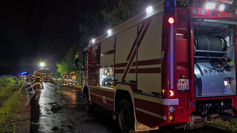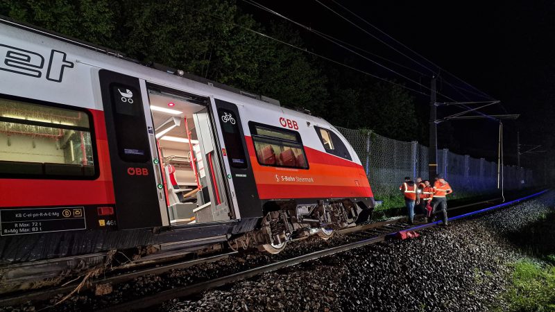 Am 16.05. um 22:11 Uhr wurde die FF Spielfeld zeitgleich mit der FF Ehrenhausen u. Ratsch zu einem Techn.- Einsatz „Zug gegen Mure“ zwischen Spielfeld und Ehrenhausen vor der Trausnermühle alarmiert. Laut Erstalarm sollte der Zug mit 10 Personen besetzt gewesen sein, nach der ersten Lage Erkundung durch ABI Hanscheg an der Einsatzstelle, konnte diesbezüglich Entwarnungen gegeben werden. Es befanden sich keine Passagiere im und außerhalb des Zuges, lediglich der Zugführer war noch im Zug, ansprechbar und nur leicht verletzt. Zeitgleich wurden von den Feuerwehren die Beleuchtungen an der gesamten Unfallstelle aufgebaut um sich ein genaueres Lagebild verschaffen zu können. Einsatzsofortmeldung: Kollision von einer Personenzuggarnitur mit einer Mure, Zuggarnitur entgleist, keine Personen im Zug bis auf den Triebfahrzeugführer, dieser ist leicht verletzt. Die weitere Erkundung ergab, dass die Oberleitung beschädigt und nicht geerdet war. Nach Rücksprache mit Florian LB und der ÖBB-Leitzentrale wurde nur eine eingeschränkte Einsatzfreigabe erteilt mit der Information, der ÖBB-Einsatzleiter sei bereits auf dem Weg zur Einsatzstelle. Daraufhin entschied die Einsatzleitung den Zugführer solange im Zug zu belassen bis der ÖBB-Einsatzleiter Vorort und die Oberleitung geerdet ist. Der Zugführer kontrollierte derweilen nochmals den gesamten Innenbereich des Zuges, ob sich wirklich keine Personen irgendwo im Zug befand. Nach der Freigabe durch den ÖBB-Einsatzleiter wurde der Triebfahrzeugführer aus dem Zug gerettet und dem Roten Kreuz übergeben. Zeitgleich suchte ein Trupp von Norden und einer von Süden den Zug Außenbereich auf der Bergseite nach etwaigen aus dem Zug geschleuderten Personen ab. Auch hier konnte sehr rasch Entwarnung gegeben werden. Nach Abklärung über die weiteren Maßnahmen mit dem ÖBB-Einsatzleiter konnten die Feuerwehren Ehrenhausen und Ratsch von der Einsatzstelle abrücken, die FF Spielfeld blieb noch für Beleuchtungsarbeiten an der Einsatzstelle. Wir bedanken uns bei allen eingesetzten Einsatzkräften für die äußerst gute und disziplinierte Zusammenarbeit. Die FF Spielfeld rückte um 01:11 Uhr in das RH ein, und meldete sich anschließend wieder Einsatzbereit bei der LLZ Steiermark zurück.