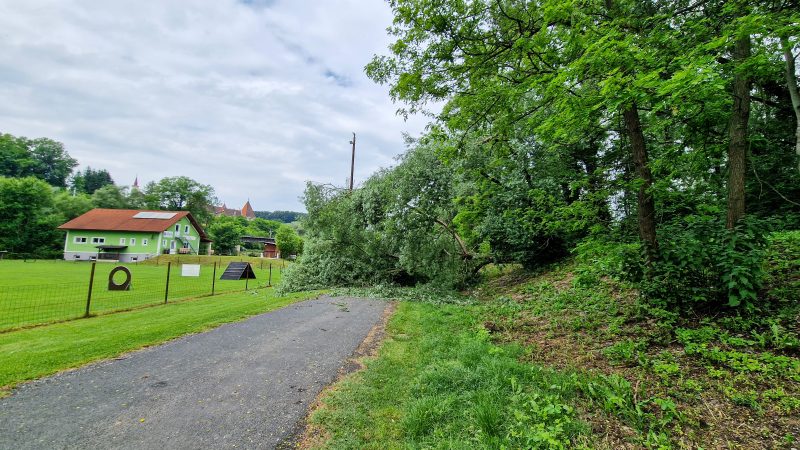 Am 07. Juni, um 11:32 Uhr wurde die Freiwillige Feuerwehr Spielfeld zur T01- Hilfeleistung zum Sportzentrum, Ortsteil Spielfeld, Gemeinde Straß in Steiermark gerufen. Aufgrund des stark durchnässten Erdreiches, ist dort ein Baum vom Murdamm über die Gemeindestraße gefallen. Die FF Spielfeld rückte unverzüglich mit LKW-A und 8 Mann zum Einsatzort aus. Unsere Aufgaben bestanden darin, Absichern der Unfallstelle und entfernen des umgefallenen Baumes von der Gemeindestraße.