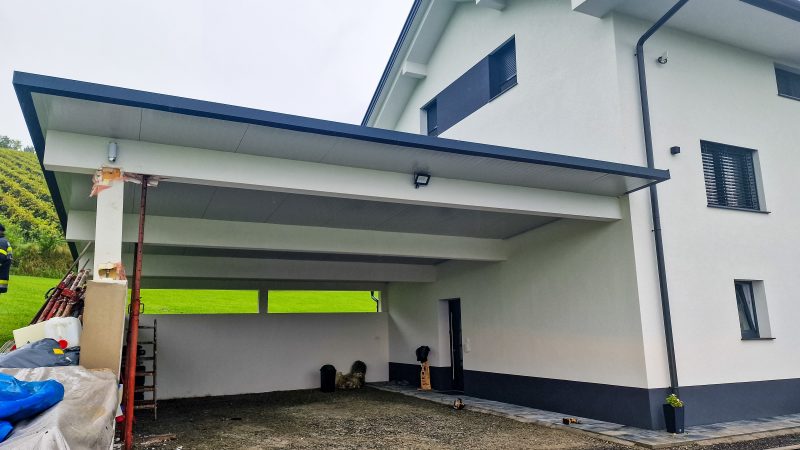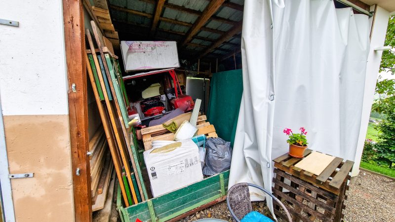 - ein Haus in der Bubenbergstraße 26. Die Stützmauer eines Carports wurde von der Hangrutschung nach innen gedrückt, wobei die 4 Steher, die das Dach tragen, abgerissen wurden.