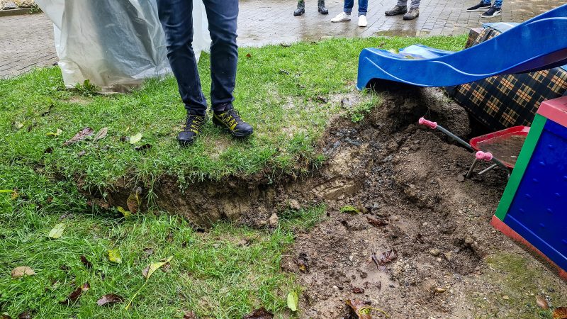 - Beim angrenzenden Nachbarn, Bubenbergstraße 24, sind Sprünge in der Zufahrt zur Garage und Garten sichtbar. In der Holzhütte, die an die Garage angebaut ist, senkt sich der Boden auf der linken Seite um ca. 30 Zentimeter.