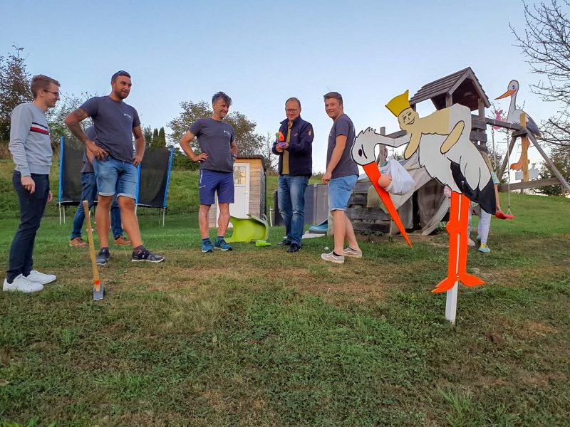 Eine kleine Abordnung der Feuerwehr traf sich am 21.09.2023 wieder zum traditionellen Storch aufstellen am Bubenberg, Ortsteil Spielfeld, Gemeinde Straß in Steiermark.