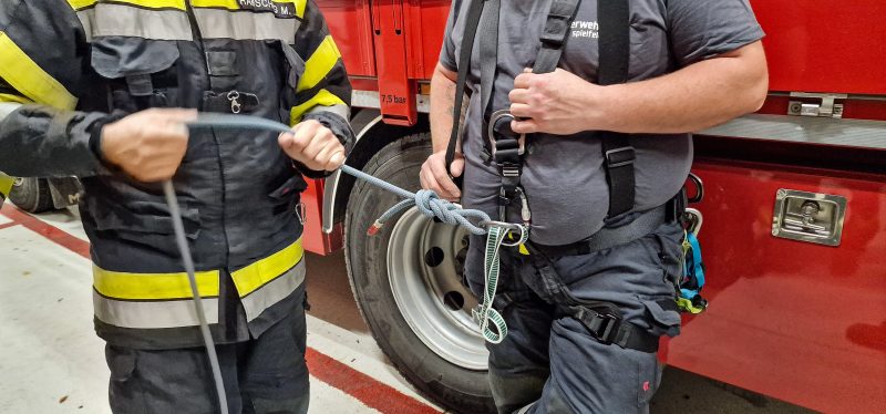 Der heutige Übungsabend mit Beginn um 19:00 Uhr wurde genutzt um in Sachen Knoten das Wissen aufzufrischen. Ein Thema, welches im Bereich der Feuerwehr eher zu den unbeliebteren Themen zählt, aber durchaus eine wichtige Grundlage für jeden Angehörigen der Feuerwehr ist. Dies wurde an diesem Übungsabend anschaulich demonstriert, denn im Ernstfall kann das sichere Beherrschen der Knoten Leben retten. Bei der Eigensicherung und beim Sichern einer weiteren Person ist auch unter zeitlichem Druck das richtige Ausführen der Knoten äußerst wichtig. Um dies gewährleisten zu können, hieß es an diesem Abend üben, üben und üben.