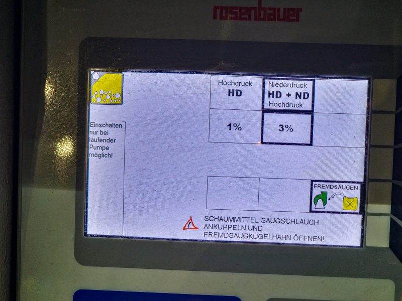 Die Schnellschaumeinrichtung beim RLF-A2000 von Rosenbauer ist mit einem Zumischer und Hohlstrahlrohr ausgestattet. Diese Zusatzausrüstung ermöglicht es dem Fahrzeug, schnell und effizient Schaummittel und Wasser zu mischen und zu versprühen. Der Zumischer sorgt dafür, dass das Schaummittel optimal dem Wasser beigemengt wird, um eine homogene Schaumlösung zu erzeugen. Das Mittelschaumrohr ermöglicht es, den erzeugten Schaum gezielt und präzise auf das Brandziel zu lenken. Das RLF A2000 ist mit verschieden Arten des Schnellangriffs mit Schaum ausgestattet. Dabei stehen dem Feuerwehrpersonal zwei Möglichkeiten zur Verfügung: der Mittelschaumrohr-Angriff und der HD-Angriff.