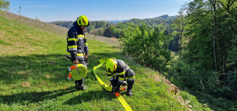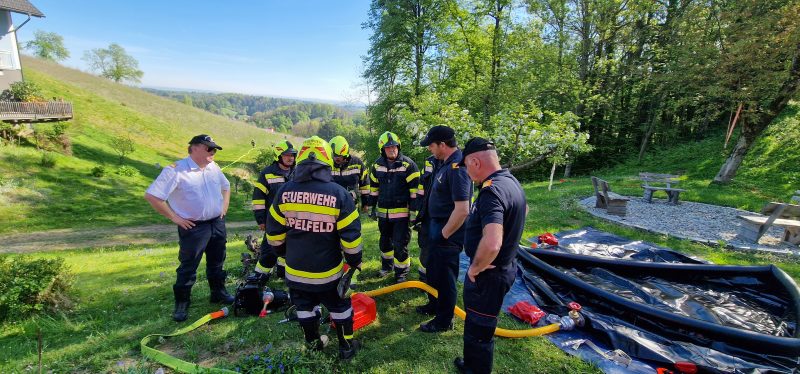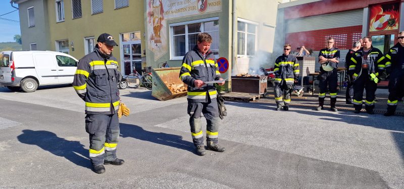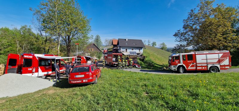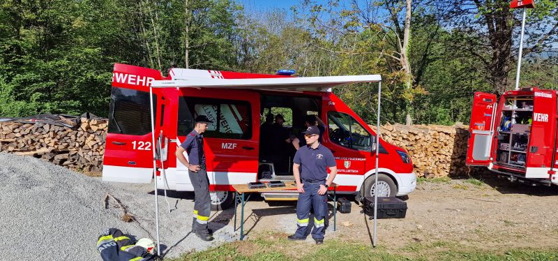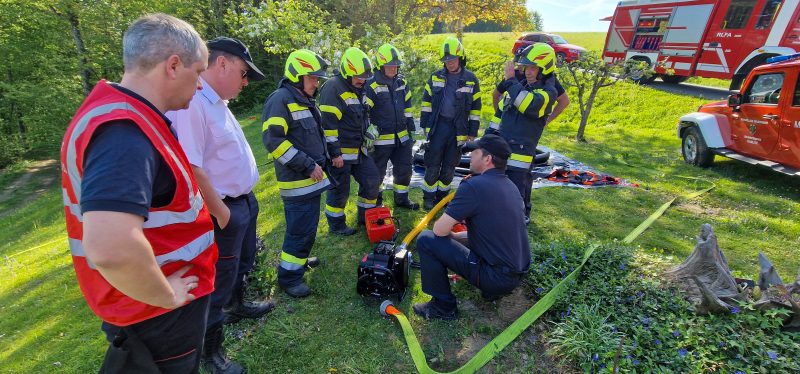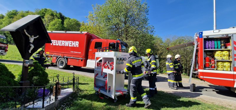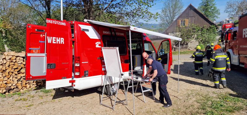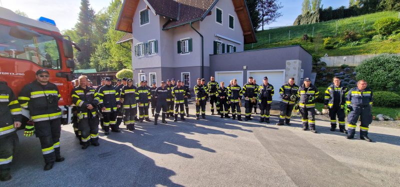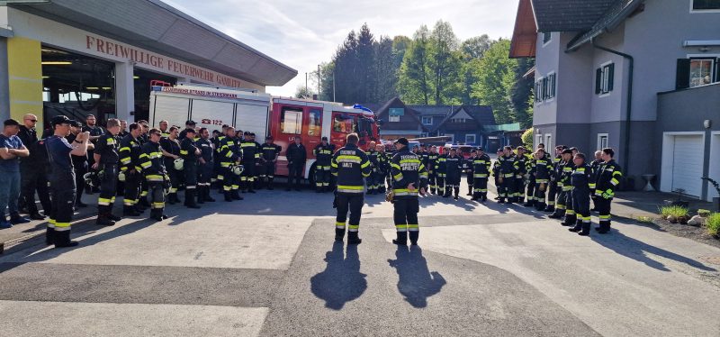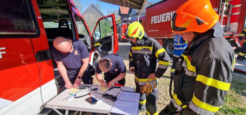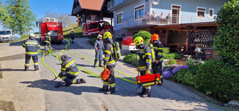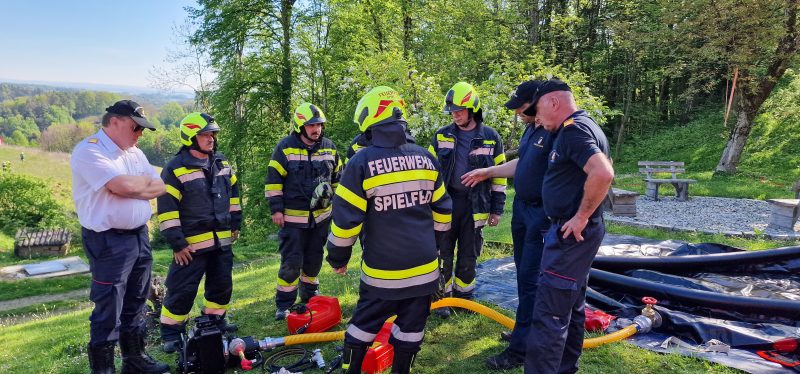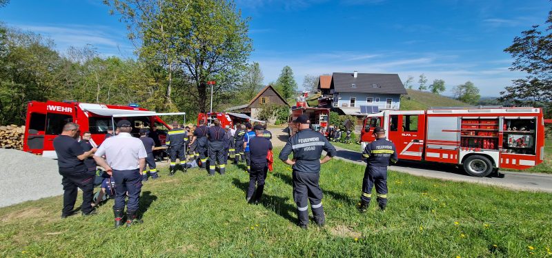 Die Abschnittsübung der Feuerwehren des Abschnitts 5 des Bereichsfeuerwehrbandes Leibnitz fand am 13.04.2024 um 09:00 Uhr in Gamlitz statt. Nach einer kurzen Einweisung rückten die Feuerwehren Ehrenhausen, Gamlitz, Gersdorf, BTF Holcim, Ratsch a. d. W., Spielfeld, Strass und Vogau zu einem Wirtschaftsgebäudebrand nach Kranachberg. Die erste Aufgabe dieser Abschnittsübung für die Feuerwehren bestand darin, auf unterschiedlichen Anfahrtswegen zu fahren. Die Karten wurden von HBI Wratschko ausgegeben, um den vorgegebenen Einsatzort bzw. die Wasserbezugsstelle anzufahren. Für die Einsatzleitung wurde das ELF-Gleinstätten und die Lagedarstellung und Lagebeurteilung aufgrund des weitläufigen Einsatzgebietes, Wasserbezugsstelle und Zubringleitung Länge gewählt. Die Drohne wurde ebenfalls alarmiert bzw. in Stellung gebracht. Nachdem die ersten Einsatzkräfte am Einsatzort eingetroffen waren, wurde sofort mit der Brandbekämpfung und der Menschenrettung unter schwerem Atemschutz begonnen. Aufgrund der exponierten Lage des Gehöftes wurde der Befehl an die Feuerwehren Straß, Vogau, Ratsch und die BTF Holcim, eine Zubringleitung von einem Teich in einer Entfernung von 760 Meter und eine Höhendifferenz von 60 Meter aufzubauen. Die Feuerwehren Ehrenhausen, Spielfeld und Gamlitz begannen den Innenangriff und bauten ein 5000 L Wasserbecken (Waldbrandcontainer) auf. Weitere Aufgaben für die Feuerwehren waren die Bereitstellung von Personal für das ELF, der Aufbau eines Atemschutzsammelplatzes und die Fertigstellung weiterer Atemschutzgeräteträger für den weiteren Innenangriff. Nachdem die Zubringleitung in kürzester Zeit aufgebaut war, konnte das Löschwasserbecken befüllt werden. Um die Aus- und Weiterbildung bei solchen Übungen nicht zu kurz kommen zu lassen, wurden Spezialkräfte wie ABI Bernd Fladischer aus BFV-BM eingesetzt, die den Feuerwehren das Konzept Waldbrandcontainer und die Taktik bei einem Waldbrand erläutern. Im Zuge dieser Übung stellte sich das Team mit der Bereichsdrohne vor. Drohnen sind wichtige Helfer bei der Lagedarstellung aus der Luft und natürlich auch bei Suchaktionen im unwegsamen Gelände. Das Breichskommando, an der Spitze mit LFR Josef Krenn mit seinem Stellvertreter BR Friedrich Partl, der auch gleichzeitig Bürgermeister von Gamlitz ist, konnten sich von der ausgezeichneten Leistungen den Feuerwehren des Abschnittes 5 persönlich Vorort überzeugen und dankten diesen auch für die ständige Bereitschaft sich weiterzubilden und für die ständige Einsatzbereitschaft!