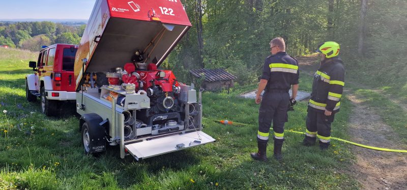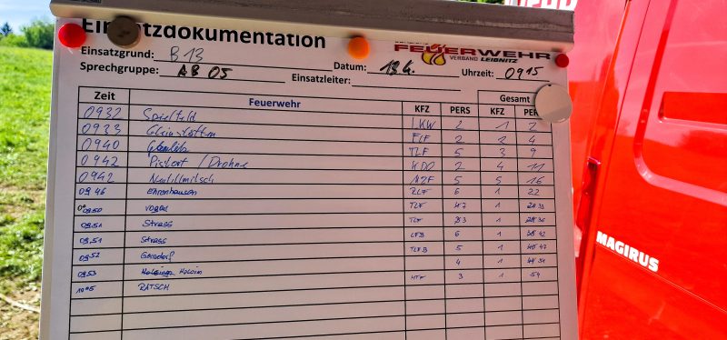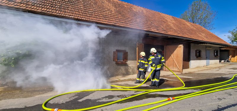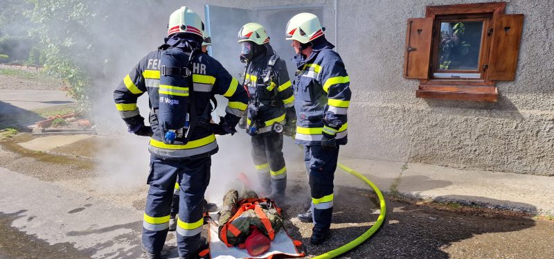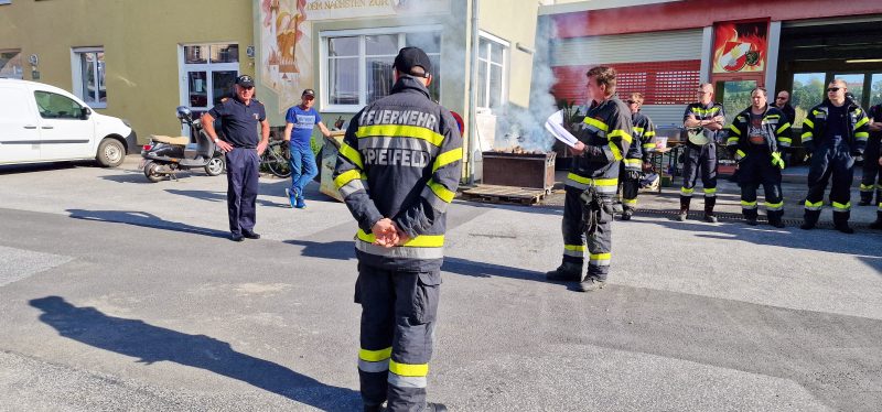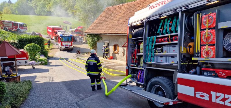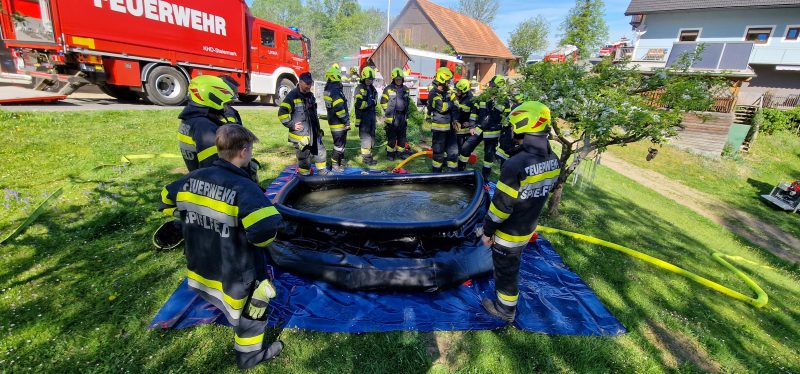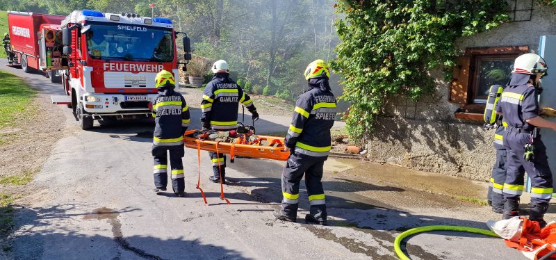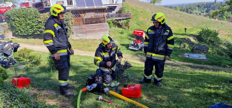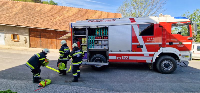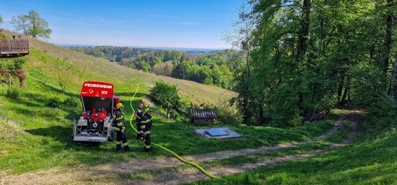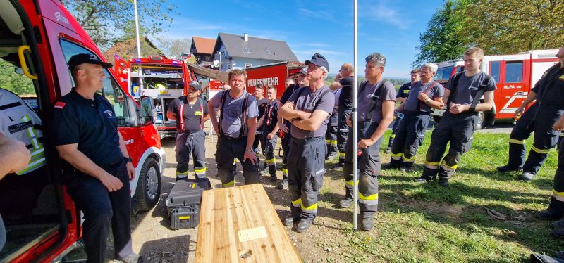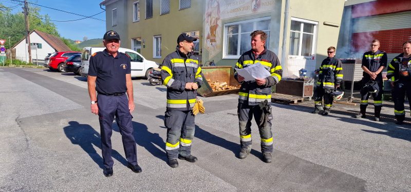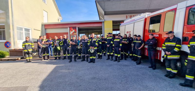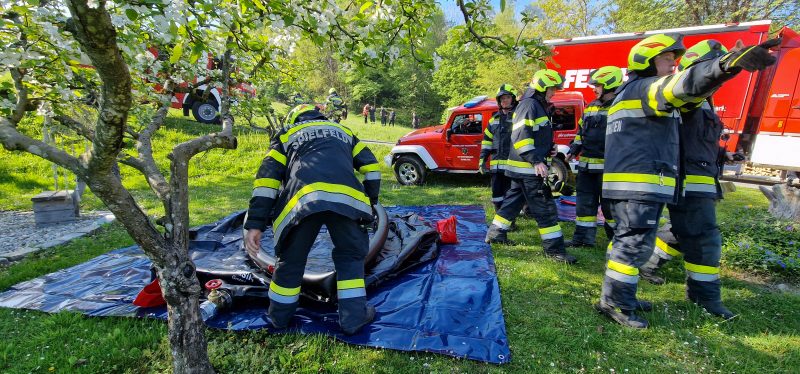 Die Abschnittsübung der Feuerwehren des Abschnitts 5 des Bereichsfeuerwehrbandes Leibnitz fand am 13.04.2024 um 09:00 Uhr in Gamlitz statt. Nach einer kurzen Einweisung rückten die Feuerwehren Ehrenhausen, Gamlitz, Gersdorf, BTF Holcim, Ratsch a. d. W., Spielfeld, Strass und Vogau zu einem Wirtschaftsgebäudebrand nach Kranachberg. Die erste Aufgabe dieser Abschnittsübung für die Feuerwehren bestand darin, auf unterschiedlichen Anfahrtswegen zu fahren. Die Karten wurden von HBI Wratschko ausgegeben, um den vorgegebenen Einsatzort bzw. die Wasserbezugsstelle anzufahren. Für die Einsatzleitung wurde das ELF-Gleinstätten und die Lagedarstellung und Lagebeurteilung aufgrund des weitläufigen Einsatzgebietes, Wasserbezugsstelle und Zubringleitung Länge gewählt. Die Drohne wurde ebenfalls alarmiert bzw. in Stellung gebracht. Nachdem die ersten Einsatzkräfte am Einsatzort eingetroffen waren, wurde sofort mit der Brandbekämpfung und der Menschenrettung unter schwerem Atemschutz begonnen. Aufgrund der exponierten Lage des Gehöftes wurde der Befehl an die Feuerwehren Straß, Vogau, Ratsch und die BTF Holcim, eine Zubringleitung von einem Teich in einer Entfernung von 760 Meter und eine Höhendifferenz von 60 Meter aufzubauen. Die Feuerwehren Ehrenhausen, Spielfeld und Gamlitz begannen den Innenangriff und bauten ein 5000 L Wasserbecken (Waldbrandcontainer) auf. Weitere Aufgaben für die Feuerwehren waren die Bereitstellung von Personal für das ELF, der Aufbau eines Atemschutzsammelplatzes und die Fertigstellung weiterer Atemschutzgeräteträger für den weiteren Innenangriff. Nachdem die Zubringleitung in kürzester Zeit aufgebaut war, konnte das Löschwasserbecken befüllt werden. Um die Aus- und Weiterbildung bei solchen Übungen nicht zu kurz kommen zu lassen, wurden Spezialkräfte wie ABI Bernd Fladischer aus BFV-BM eingesetzt, die den Feuerwehren das Konzept Waldbrandcontainer und die Taktik bei einem Waldbrand erläutern. Im Zuge dieser Übung stellte sich das Team mit der Bereichsdrohne vor. Drohnen sind wichtige Helfer bei der Lagedarstellung aus der Luft und natürlich auch bei Suchaktionen im unwegsamen Gelände. Das Breichskommando, an der Spitze mit LFR Josef Krenn mit seinem Stellvertreter BR Friedrich Partl, der auch gleichzeitig Bürgermeister von Gamlitz ist, konnten sich von der ausgezeichneten Leistungen den Feuerwehren des Abschnittes 5 persönlich Vorort überzeugen und dankten diesen auch für die ständige Bereitschaft sich weiterzubilden und für die ständige Einsatzbereitschaft!