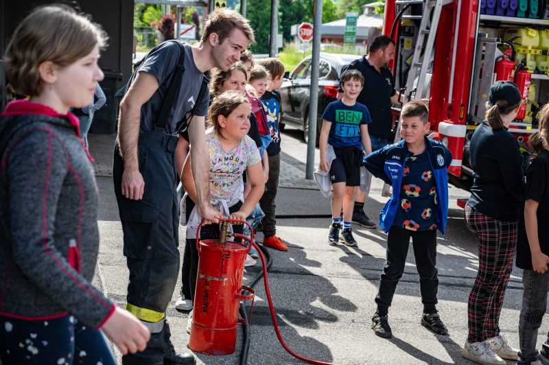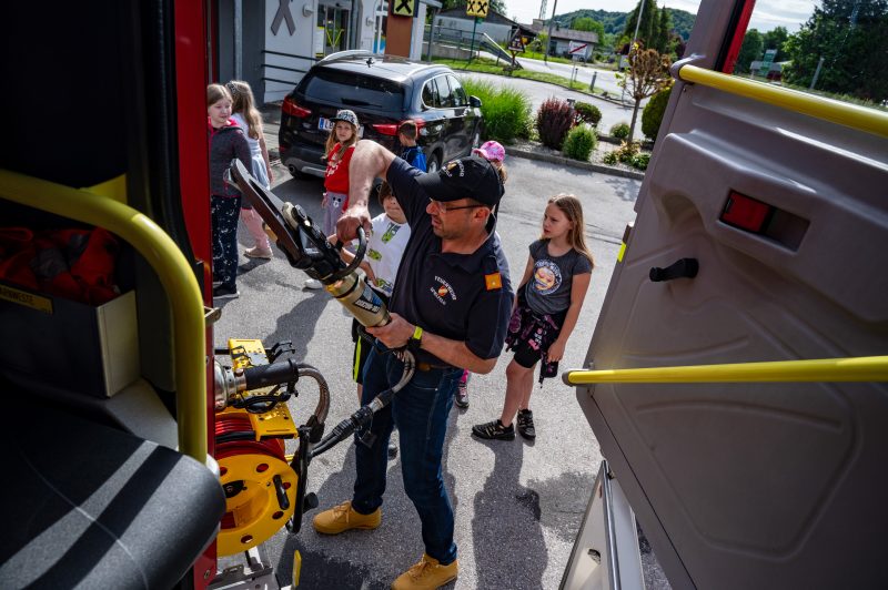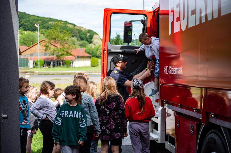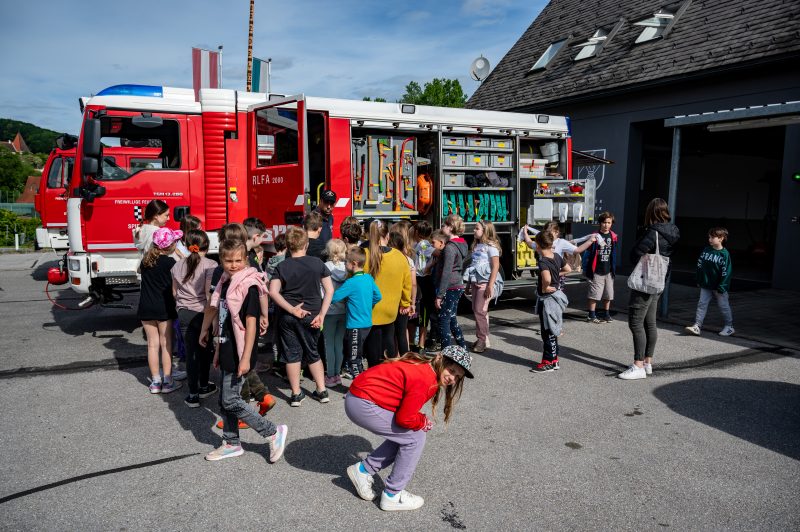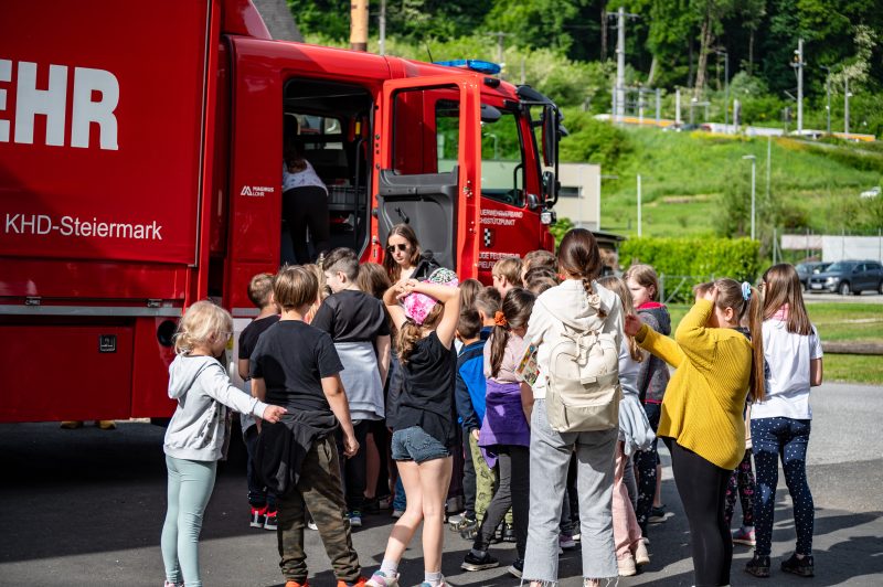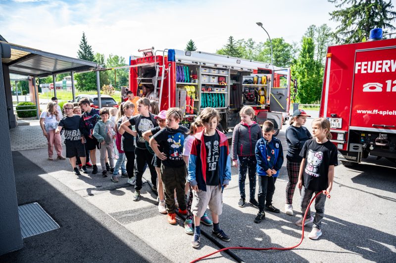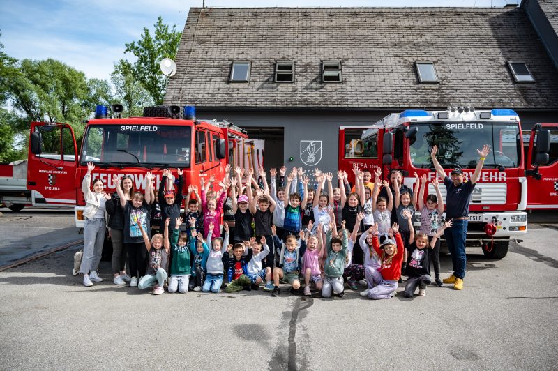 Heute, am 07.05.2024, besuchte die Volksschule Spielfeld mit einem 2-köpfigen Lehrerteam die örtliche Feuerwehr Spielfeld. Die Schülerinnen und Schüler hatten die Möglichkeit, die Feuerwehrstation zu besichtigen und die verschiedenen Gerätschaften auszuprobieren. Besonders interessant war der Bereich des Atemschutzes, bei dem die Kinder erfahren konnten, wie wichtig es ist, sich vor gefährlichen Rauchgasen zu schützen. Auch die Bedienung von Werkzeugen wie Schere und Spreizer wurden den Schülern erklärt und vorgeführt. Ein weiteres Highlight war die Demonstration der Wasserversorgung, bei der die Feuerwehr die Schülerinnen und Schüler zeigte, wie wichtig es ist, immer genügend Wasser zur Verfügung zu haben, um Feuer effektiv löschen zu können. Dieser Einblick ermöglicht es den Kindern, das Interesse an diesem wichtigen Einsatzbereich zu wecken und erste Erfahrungen mit dem Feuerwehralltag zu sammeln. Durch Projekte und Veranstaltungen in der Volksschule erhalten die Kinder die Möglichkeit, verschiedene Aspekte des Feuerwehrwesens kennenzulernen, wie beispielsweise die Fahrzeugtechnik, das Löschen von Bränden oder die Erste Hilfe. So können sie bereits in jungen Jahren ihre Stärken und Interessen für den Feuerwehrdienst entdecken. Die Kinder lernen, Verantwortung zu übernehmen und im Team zu arbeiten, was wichtige Fähigkeiten für den späteren Feuerwehrdienst sind. Darüber hinaus werden sie über die möglichen Risiken und Gefahren informiert, sodass sie sich bewusst für den Feuerwehrdienst entscheiden können. Durch diese frühe Berührung mit dem Feuerwehrwesen wird den Kindern ermöglicht, eine fundierte Entscheidung hinsichtlich ihres zukünftigen beruflichen Weges zu treffen und frühzeitig Verantwortung für die Sicherheit anderer Menschen zu übernehmen. Dieser Ausflug zur Feuerwehr ermöglichte den Schülerinnen und Schülern einen spannenden Einblick in die Arbeit der Feuerwehr und vermittelte ihnen wichtige Kenntnisse zum Thema Brandschutz und Notfallvorsorge. Sie konnten erfahren, wie sie sich in Gefahrensituationen verhalten sollten und erlangten ein besseres Verständnis für die Bedeutung der Feuerwehr für ihre Gemeinschaft. Hallo Auto für die Volksschulkinder ist ein Programm, das Kindern im Grundschulalter wichtige Kenntnisse über den Straßenverkehr vermittelt. Es zielt darauf ab, die Sicherheit der Kinder im Straßenverkehr zu verbessern und Unfälle zu verhindern. Insgesamt ist Hallo Auto ein wichtiges Programm, das auf spielerische Weise die Kenntnisse der Volksschulkinder über den Straßenverkehr erweitert und somit zu einer sicheren Teilnahme am Straßenverkehr beiträgt. Zum Abschluss durften die Kinder mit den Einsatzfahrzeugen der Feuerwehr zur Schule fahren.