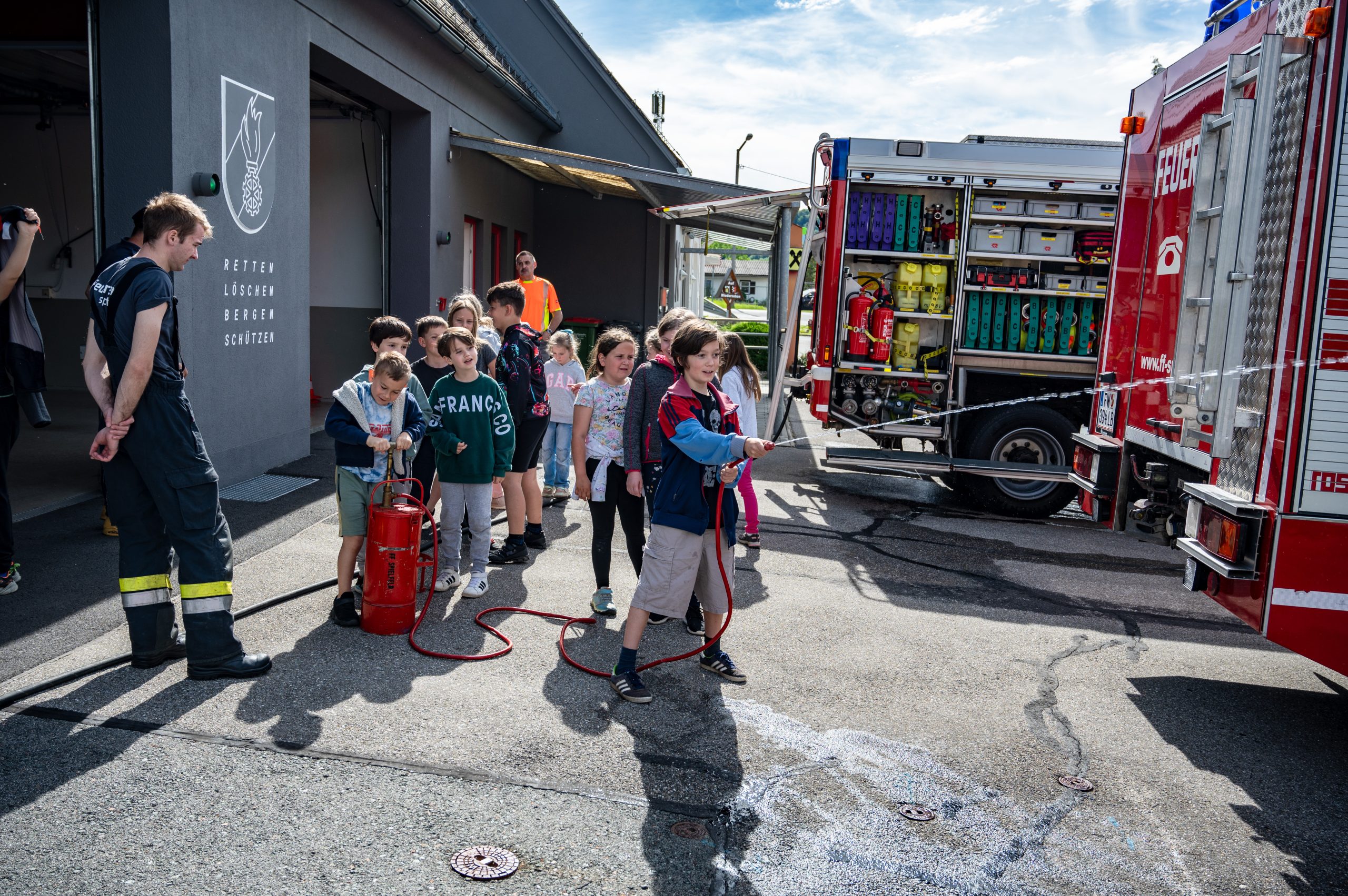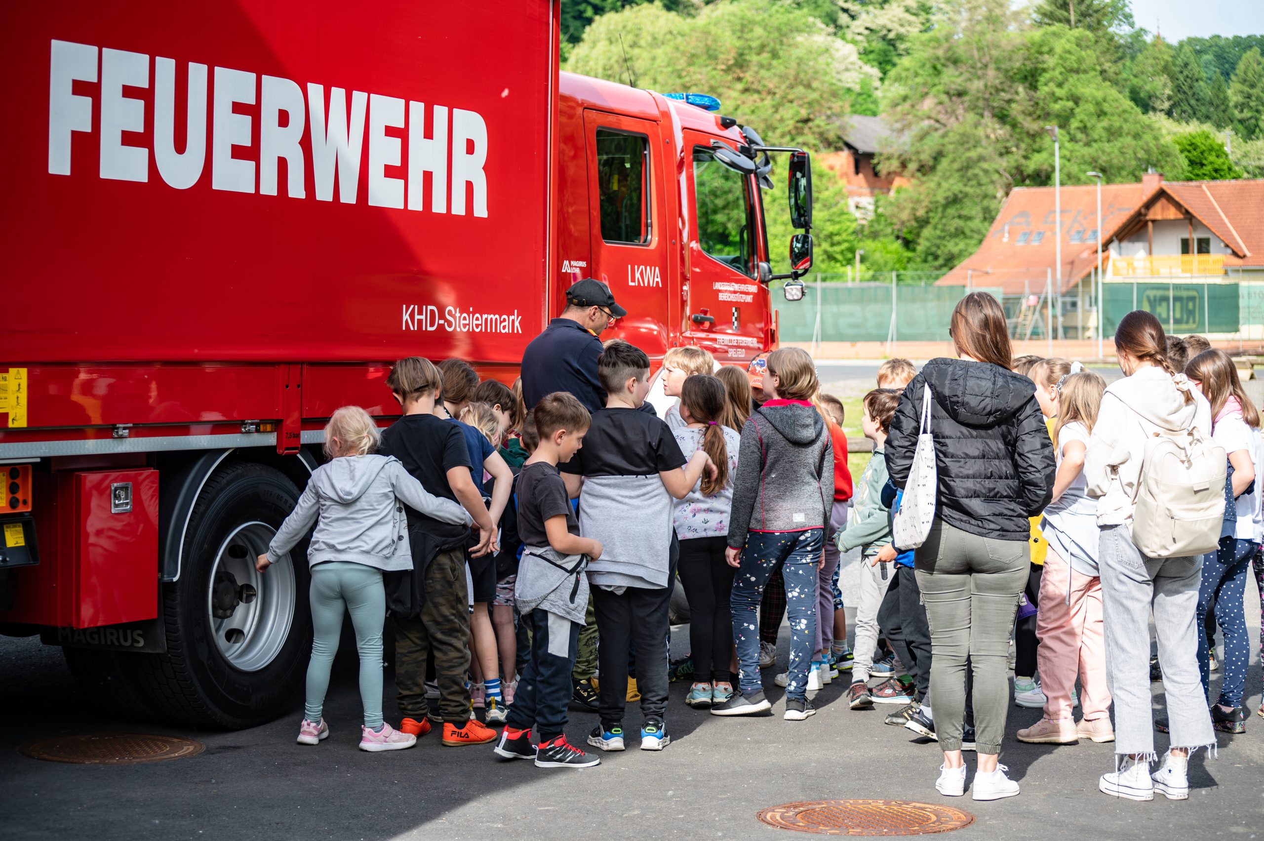 Heute, am 07.05.2024, besuchte die Volksschule Spielfeld mit einem 2-köpfigen Lehrerteam die örtliche Feuerwehr Spielfeld. Die Schülerinnen und Schüler hatten die Möglichkeit, die Feuerwehrstation zu besichtigen und die verschiedenen Gerätschaften auszuprobieren. Besonders interessant war der Bereich des Atemschutzes, bei dem die Kinder erfahren konnten, wie wichtig es ist, sich vor gefährlichen Rauchgasen zu schützen. Auch die Bedienung von Werkzeugen wie Schere und Spreizer wurden den Schülern erklärt und vorgeführt. Ein weiteres Highlight war die Demonstration der Wasserversorgung, bei der die Feuerwehr die Schülerinnen und Schüler zeigte, wie wichtig es ist, immer genügend Wasser zur Verfügung zu haben, um Feuer effektiv löschen zu können. Dieser Einblick ermöglicht es den Kindern, das Interesse an diesem wichtigen Einsatzbereich zu wecken und erste Erfahrungen mit dem Feuerwehralltag zu sammeln. Durch Projekte und Veranstaltungen in der Volksschule erhalten die Kinder die Möglichkeit, verschiedene Aspekte des Feuerwehrwesens kennenzulernen, wie beispielsweise die Fahrzeugtechnik, das Löschen von Bränden oder die Erste Hilfe. So können sie bereits in jungen Jahren ihre Stärken und Interessen für den Feuerwehrdienst entdecken. Die Kinder lernen, Verantwortung zu übernehmen und im Team zu arbeiten, was wichtige Fähigkeiten für den späteren Feuerwehrdienst sind. Darüber hinaus werden sie über die möglichen Risiken und Gefahren informiert, sodass sie sich bewusst für den Feuerwehrdienst entscheiden können. Durch diese frühe Berührung mit dem Feuerwehrwesen wird den Kindern ermöglicht, eine fundierte Entscheidung hinsichtlich ihres zukünftigen beruflichen Weges zu treffen und frühzeitig Verantwortung für die Sicherheit anderer Menschen zu übernehmen. Dieser Ausflug zur Feuerwehr ermöglichte den Schülerinnen und Schülern einen spannenden Einblick in die Arbeit der Feuerwehr und vermittelte ihnen wichtige Kenntnisse zum Thema Brandschutz und Notfallvorsorge. Sie konnten erfahren, wie sie sich in Gefahrensituationen verhalten sollten und erlangten ein besseres Verständnis für die Bedeutung der Feuerwehr für ihre Gemeinschaft. Hallo Auto für die Volksschulkinder ist ein Programm, das Kindern im Grundschulalter wichtige Kenntnisse über den Straßenverkehr vermittelt. Es zielt darauf ab, die Sicherheit der Kinder im Straßenverkehr zu verbessern und Unfälle zu verhindern. Insgesamt ist Hallo Auto ein wichtiges Programm, das auf spielerische Weise die Kenntnisse der Volksschulkinder über den Straßenverkehr erweitert und somit zu einer sicheren Teilnahme am Straßenverkehr beiträgt. Zum Abschluss durften die Kinder mit den Einsatzfahrzeugen der Feuerwehr zur Schule fahren.