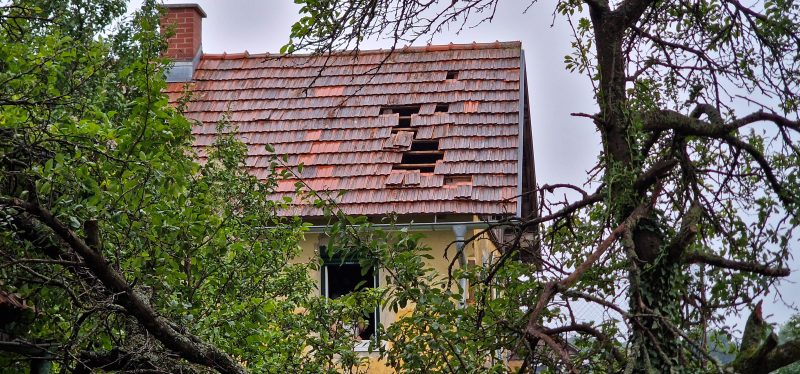 Mit Unterstützung der Freiwilligen Feuerwehr Ehrenhausen wurde der kleine Abgedeckte Bereich mit neuem Ziegel, die sich in einem Schuppen befanden wieder zugedeckt werden. Dank des schnellen Handelns konnten die Dachziegel wieder auf das Dach gelegt und so die Schutzfunktion des Gebäudes wiederhergestellt werden.