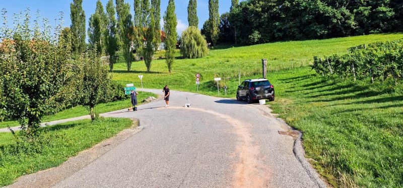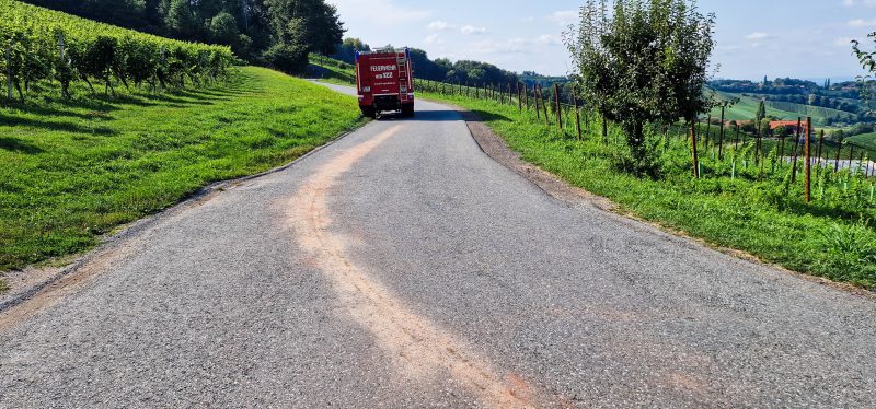 Heute am 20.08.2024 um 16:02 Uhr wurden wir durch einen Sirenenalarm am Graßnitzberg 39 alarmiert. Dieser Alarm wurde durch einen technischen Defekt bei einem PKW ausgelöst, der zu einem Ölaustritt führte. Nachdem wir die Lage erkundet haben, stellten wir fest, dass eine Hydraulickleitung an dem Fahrzeug geplatzt war, was zu einer etwa 80 Meter langen Ölspur auf der Gemeindestraße am Graßnitzberg führte. Nach einem Ölaustritt am Fahrzeug handelten wir sofort, um zu verhindern, dass das Öl in das Erdreich eindringt und das Grundwasser verseucht wird. Um dieses Umweltrisiko zu minimieren, begannen wir umgehend Ölbindemittel aufzutragen. Das Ölbindemittel absorbiert das ausgelaufene Öl und verhindert so dessen weitere Ausbreitung. Während wir das Ölbindemittel auftrugen, mussten wir jedoch auch das Abschleppunternehmen abwarten. Das restliche Öl, in der Nähe des PKW-Standorts, musste ebenfalls gebunden und entfernt werden. Sobald das Abschleppunternehmen eintraf, konnten wir auch diese letzte Maßnahme ergreifen, um das ausgelaufene Öl sicher zu beseitigen. Nach Beendigung dieser Maßnahmen rückten wir wieder in das Rüsthaus ein und meldeten uns per Funk über die die Landesleitzentralle Steiermark wieder Einsatzbereit zurück.