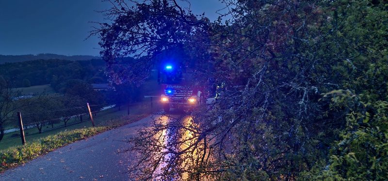Bäume auf Gemeindestraße gefallen