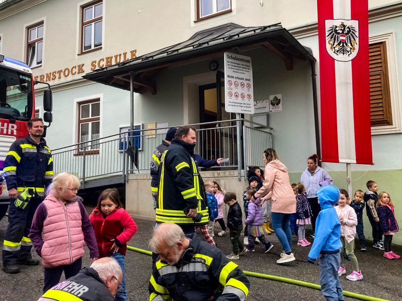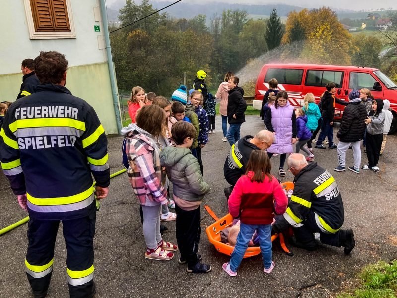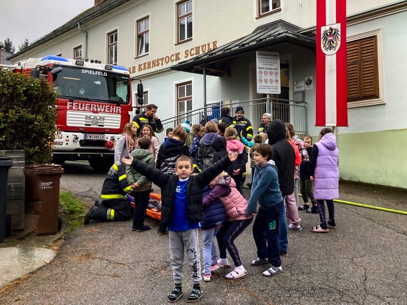 So führte heute am 24.10.2024 um 10:00 Uhr die Freiwillige Feuerwehr Spielfeld mit der Bildungsinitiative “GEMEINSAM.SICHER.FEUERWEHR” einen wichtigen und wesentlichen Beitrag zur Brand- und Katastrophenschutzerziehung im Kindergarten und Schule in Spielfeld durch. Bei der heutigen Schul- Kindergartenübung wurden 2 Kinder von Atemschutzgeräteträgern aus verrauchten Räumen geborgen. Insgesamt hielten sich 35 Volksschul- und 25 Kindergartenkinder vor der Alarmierung im Schul- bzw. Kindergarten Gebäude auf. Die Atemschutzgeräteträger konnten die Kinder sicher aus den betroffenen Bereichen bringen. Die Kinder wurden dann an einen sicheren Ort gebracht, wo sie von Lehrern und Betreuern betreut wurden. Die Evakuierung verlief reibungslos und die Kinder nahmen die Übung ernsthaft und diszipliniert an.