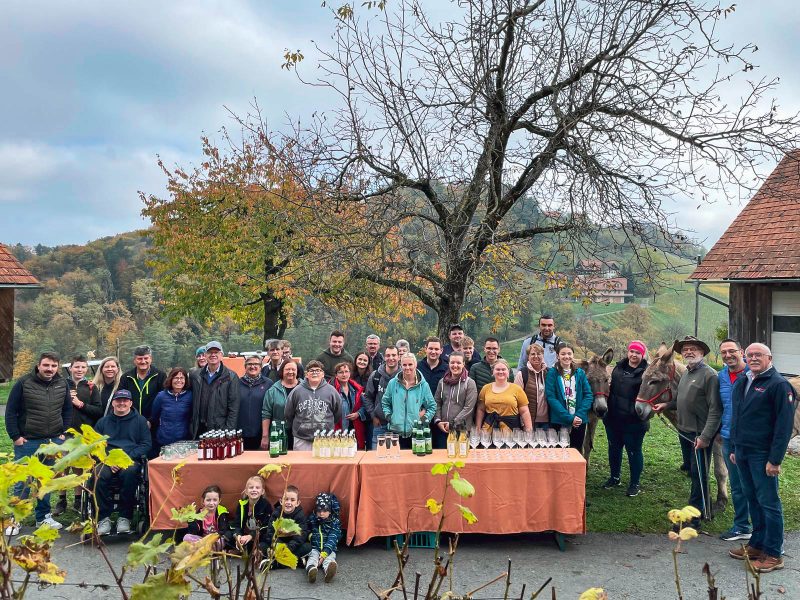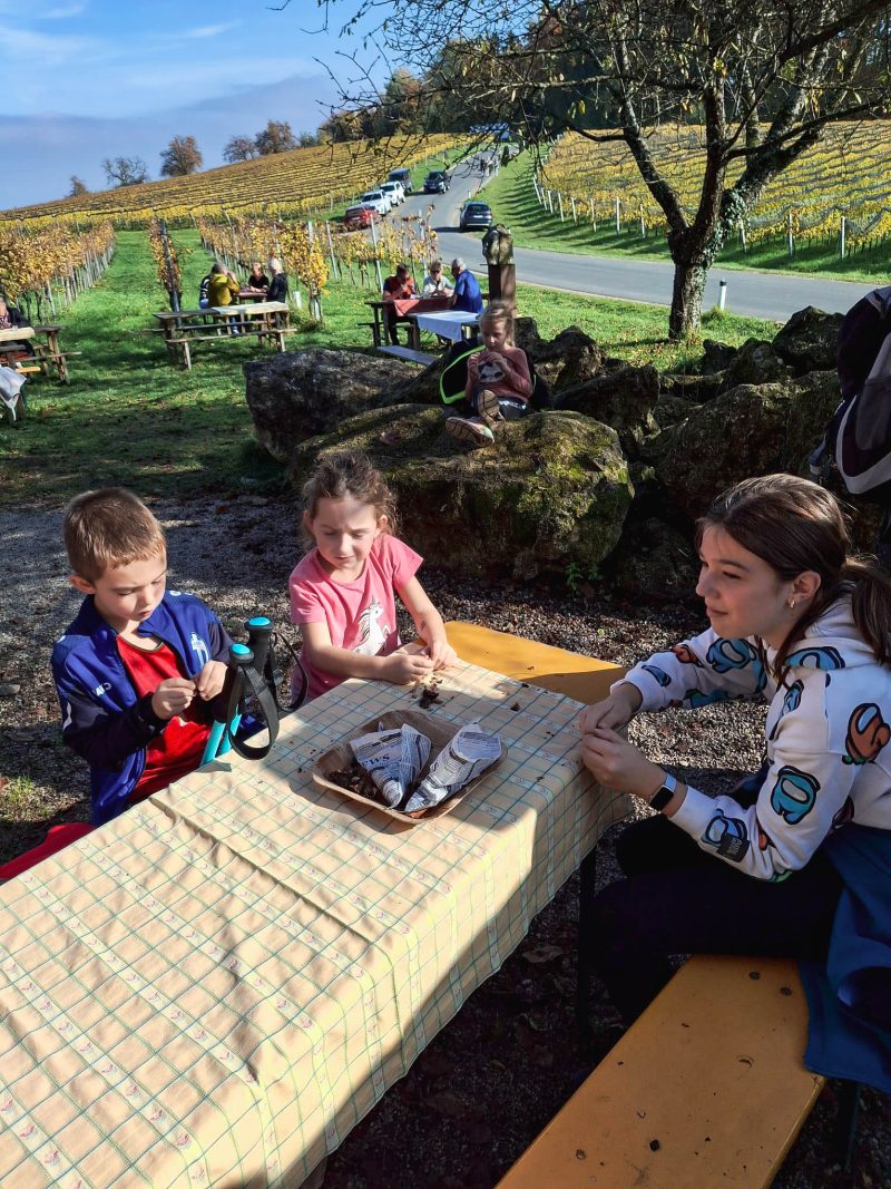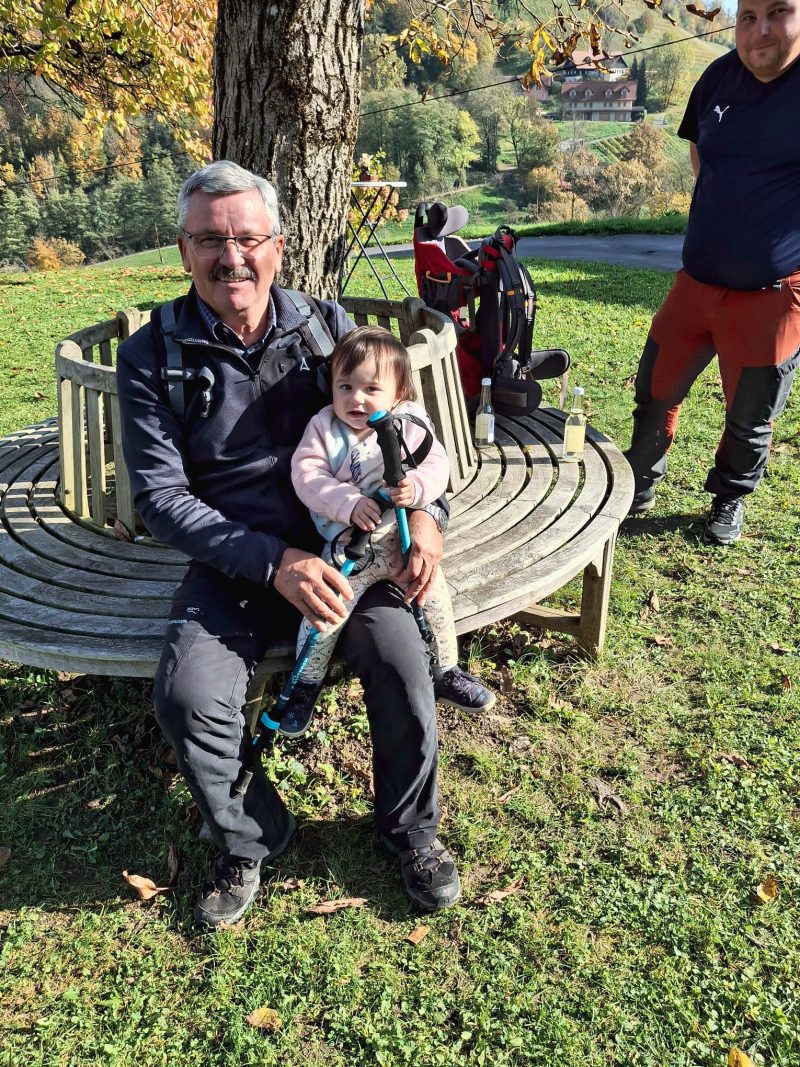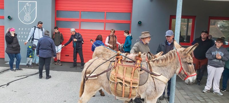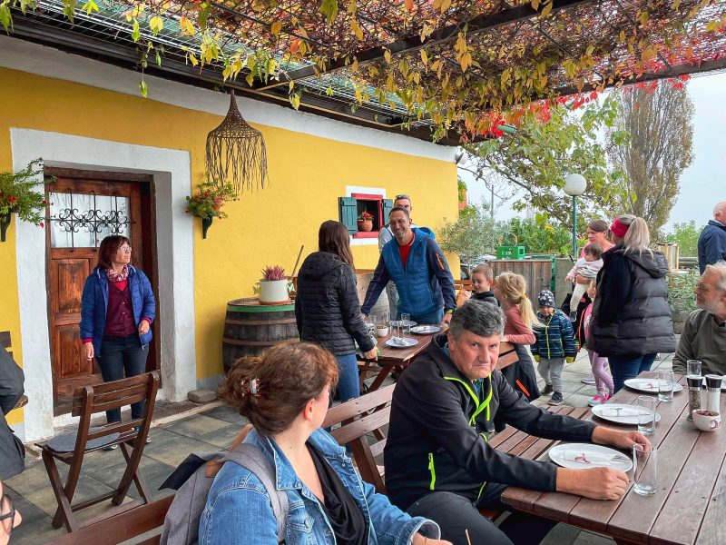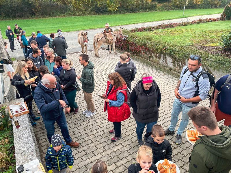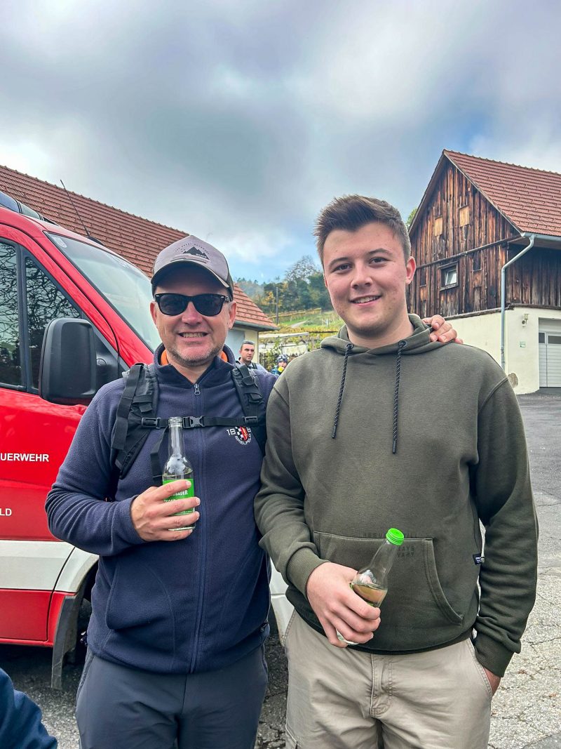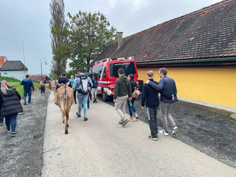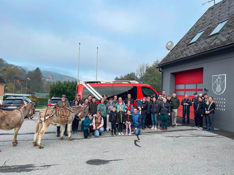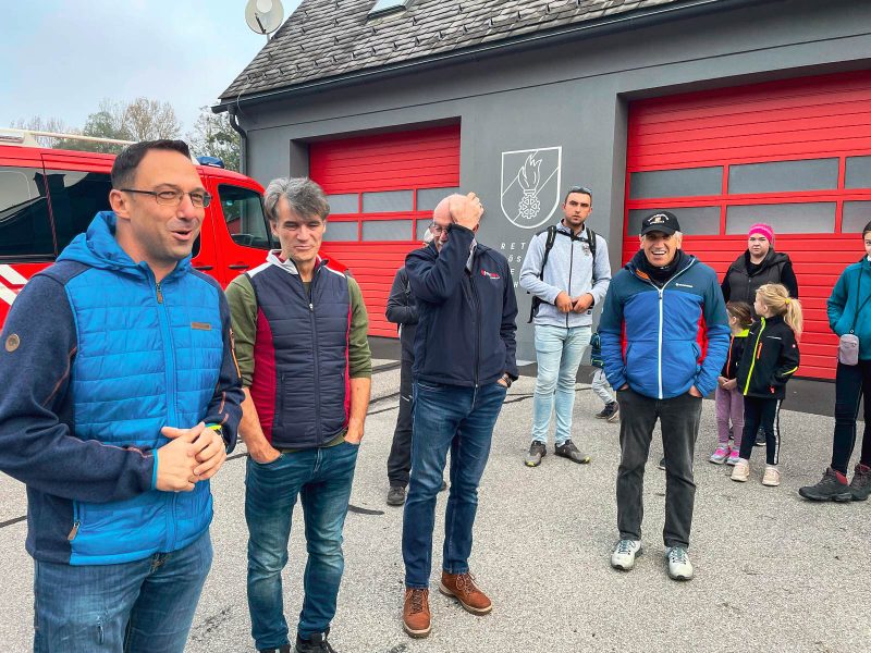 Es ist bereits zur Tradition bei der Feuerwehr Spielfeld geworden, dass am Nationalfeiertag der alljährliche Familienwandertag durchgeführt wird. Bei diesem sind wirklich die gesamte Familie aller Kameradinnen u. Kameraden, von Jung bis Alt, vom Kind bis hin zu den Haustieren, heuer waren es Esel, eingeladen. Bei diesem Wandertag haben wir uns das Ziel gesetzt, dass wir gemütlich eine kleine Runde wandern und Betriebe in unserer Gemeinde besuchen um deren Produkte uns präsentieren lassen und diese dann auch verkosten. Der Verantwortliche für diesen Wandertag, unser BI d. S. Werner Schintler, hat sich heuer wieder eine besondere Route, aber auch besondere Betriebe ausgesucht. Wie alle Jahre wurde pünktlichst um 09:00 Uhr nach der Begrüßung gestartet. Die Strecke führte uns über den Bahnhof, den Rosenberg bis auf den Graßnitzberg zum Buschenschank “Muster-Stubn” wo wir bei noch nicht so freundlichem Wetter, aber dafür mit herrlicher Aussicht eine genussvolle Jause und natürlich auch sehr gute Weine, zu uns nehmen durften. Nach der Stärkung ging es querfeldein durch malerische Weingärten zum Weingut Kugel. Unser OBI Ben Kugel und seine Frau Julia empfingen uns mit einem Buffet an Köstlichkeiten, für unsere Kleinen gab es hauseigene Säfte und für die Erwachsenen zu Beginn einen Frizzante. Nach der Begrüßung durften wir unter den Ausführungen unseres OBI’s eine sehr interessante Kellerführung mit Verkostung mitmachen. Bei dieser Kellerführung bekamen wir sehr aufschlussreiche Einblicke in die Arbeit eines Weinbauers. Von der Ernte bis zum fertigen Wein in die Flasche. Fragen wurden genauesten beantwortet. Die Technik dahinter wurde erklärt, aber auch die Philosophie am Weingut Kugel wurde uns sehr anschaulich nähergebracht. Während der Führung durften wir unter der fachlichen Erläuterung von Ben und seiner Frau mehrere hervorragende Weine verkosten. Zum Schluss hatten wir sogar die Möglichkeit auch noch spezielle Weine aus den Eichenfässern zu probieren und uns auch noch etwas zu stärken. Weiter ging es dann über einen steilen Anstieg zur Weinstraße mit Zwischenstationen zum Weingut Pilch. Fast pünktlich trafen wir kurz nach 15:00 Uhr, bei unserer letzten Station dieses Wandertages, beim WG Pilch ein. Madeleine und Reinhard nahmen uns herzlichst in Empfang und wir verbrachten in einer sehr gemütlicher und angenehmer Atmosphäre noch einige Stunden.