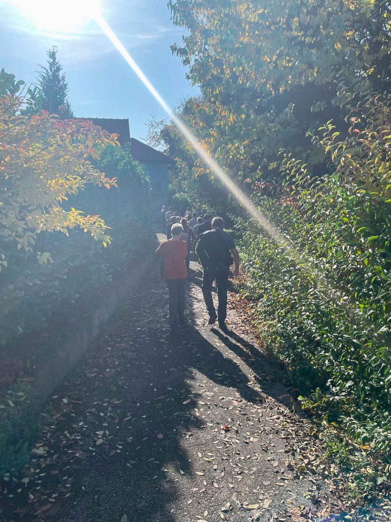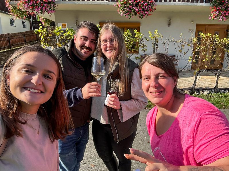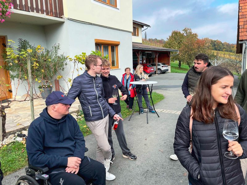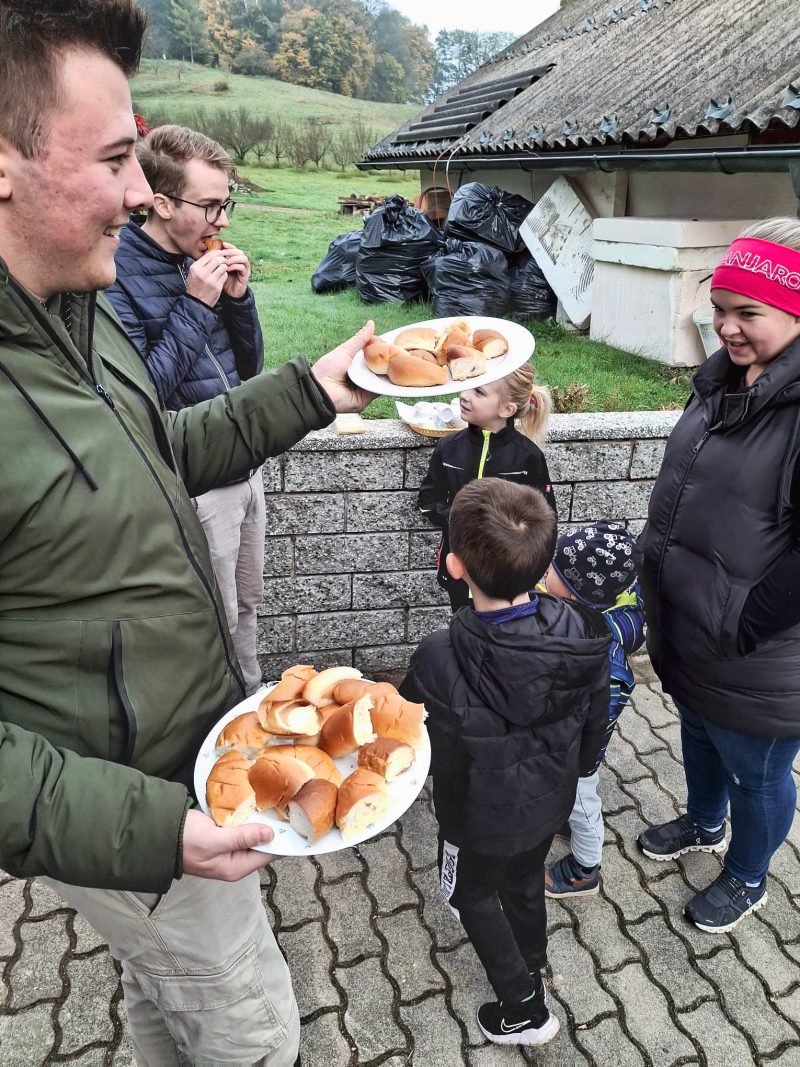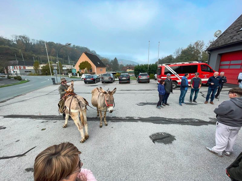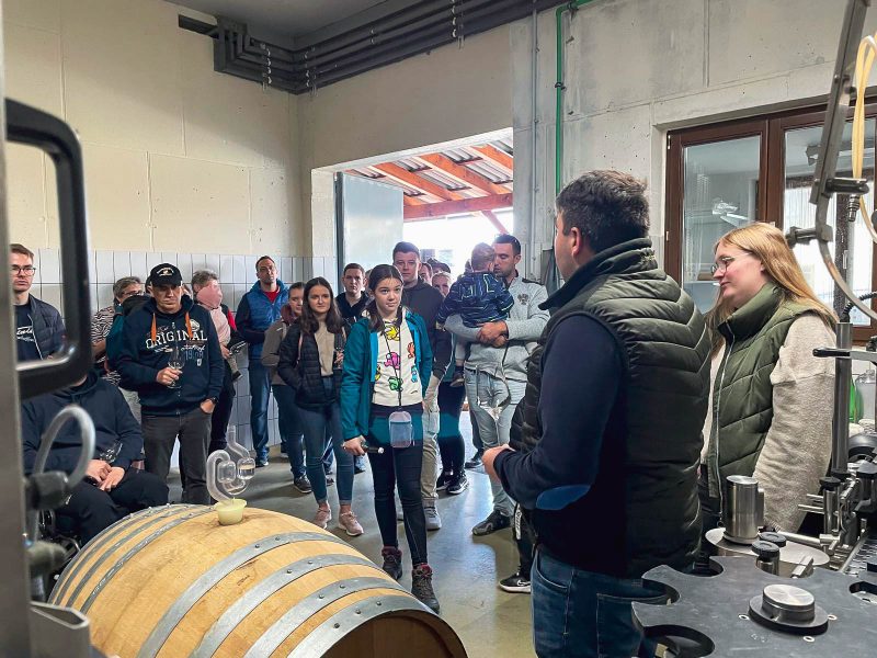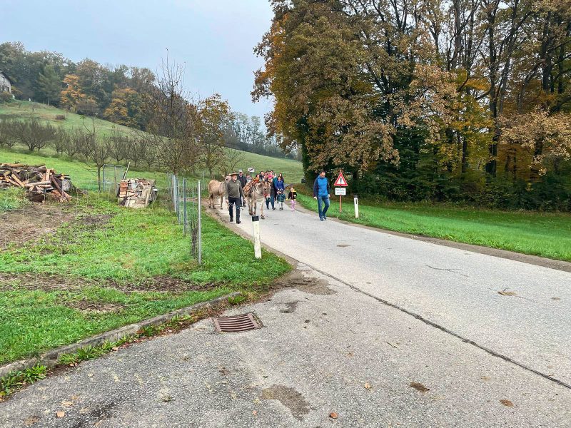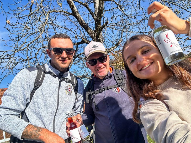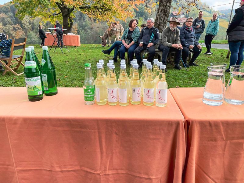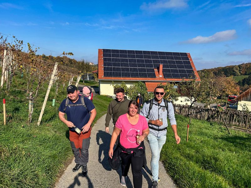 Es ist bereits zur Tradition bei der Feuerwehr Spielfeld geworden, dass am Nationalfeiertag der alljährliche Familienwandertag durchgeführt wird. Bei diesem sind wirklich die gesamte Familie aller Kameradinnen u. Kameraden, von Jung bis Alt, vom Kind bis hin zu den Haustieren, heuer waren es Esel, eingeladen. Bei diesem Wandertag haben wir uns das Ziel gesetzt, dass wir gemütlich eine kleine Runde wandern und Betriebe in unserer Gemeinde besuchen um deren Produkte uns präsentieren lassen und diese dann auch verkosten. Der Verantwortliche für diesen Wandertag, unser BI d. S. Werner Schintler, hat sich heuer wieder eine besondere Route, aber auch besondere Betriebe ausgesucht. Wie alle Jahre wurde pünktlichst um 09:00 Uhr nach der Begrüßung gestartet. Die Strecke führte uns über den Bahnhof, den Rosenberg bis auf den Graßnitzberg zum Buschenschank “Muster-Stubn” wo wir bei noch nicht so freundlichem Wetter, aber dafür mit herrlicher Aussicht eine genussvolle Jause und natürlich auch sehr gute Weine, zu uns nehmen durften. Nach der Stärkung ging es querfeldein durch malerische Weingärten zum Weingut Kugel. Unser OBI Ben Kugel und seine Frau Julia empfingen uns mit einem Buffet an Köstlichkeiten, für unsere Kleinen gab es hauseigene Säfte und für die Erwachsenen zu Beginn einen Frizzante. Nach der Begrüßung durften wir unter den Ausführungen unseres OBI’s eine sehr interessante Kellerführung mit Verkostung mitmachen. Bei dieser Kellerführung bekamen wir sehr aufschlussreiche Einblicke in die Arbeit eines Weinbauers. Von der Ernte bis zum fertigen Wein in die Flasche. Fragen wurden genauesten beantwortet. Die Technik dahinter wurde erklärt, aber auch die Philosophie am Weingut Kugel wurde uns sehr anschaulich nähergebracht. Während der Führung durften wir unter der fachlichen Erläuterung von Ben und seiner Frau mehrere hervorragende Weine verkosten. Zum Schluss hatten wir sogar die Möglichkeit auch noch spezielle Weine aus den Eichenfässern zu probieren und uns auch noch etwas zu stärken. Weiter ging es dann über einen steilen Anstieg zur Weinstraße mit Zwischenstationen zum Weingut Pilch. Fast pünktlich trafen wir kurz nach 15:00 Uhr, bei unserer letzten Station dieses Wandertages, beim WG Pilch ein. Madeleine und Reinhard nahmen uns herzlichst in Empfang und wir verbrachten in einer sehr gemütlicher und angenehmer Atmosphäre noch einige Stunden.