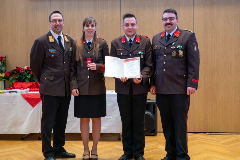 Beförderungen Aktiv: Aufgrund von Ausbildungen, besonderen Leistungen aber auch durch Dienstjahre kann man in der Feuerwehr befördert werden. Diese Damen und Herren haben die erforderlichen Ausbildungen absolviert bzw. sind schon langjährige Feuerwehrmitglieder und werden heute befördert. FF Ariane Hanscheg zum OFF, FM Simon-Paul Skarget zum OFM, FM Günter Simmerl zum OFM und FM Martin Ringbauer zum OFM.