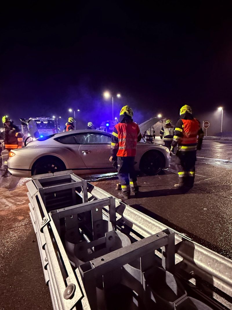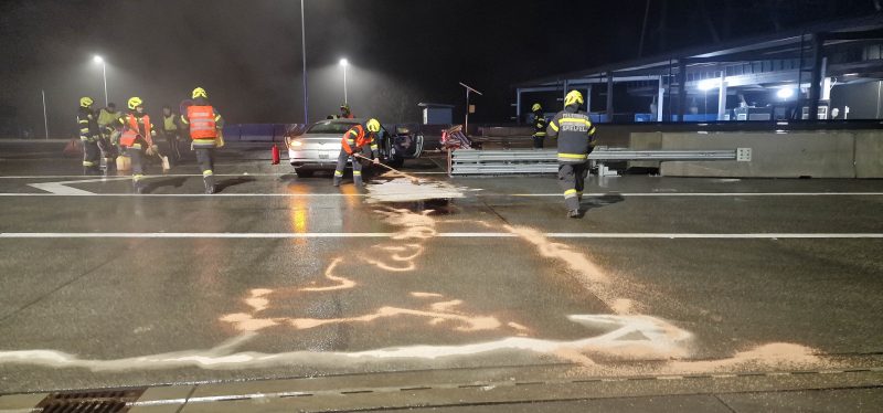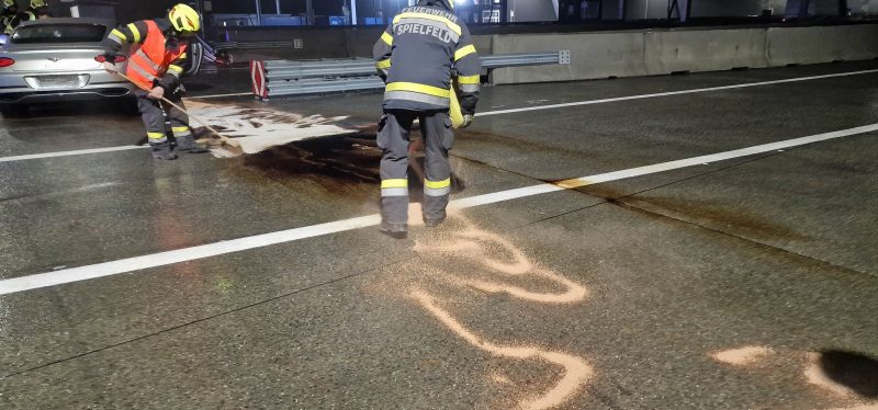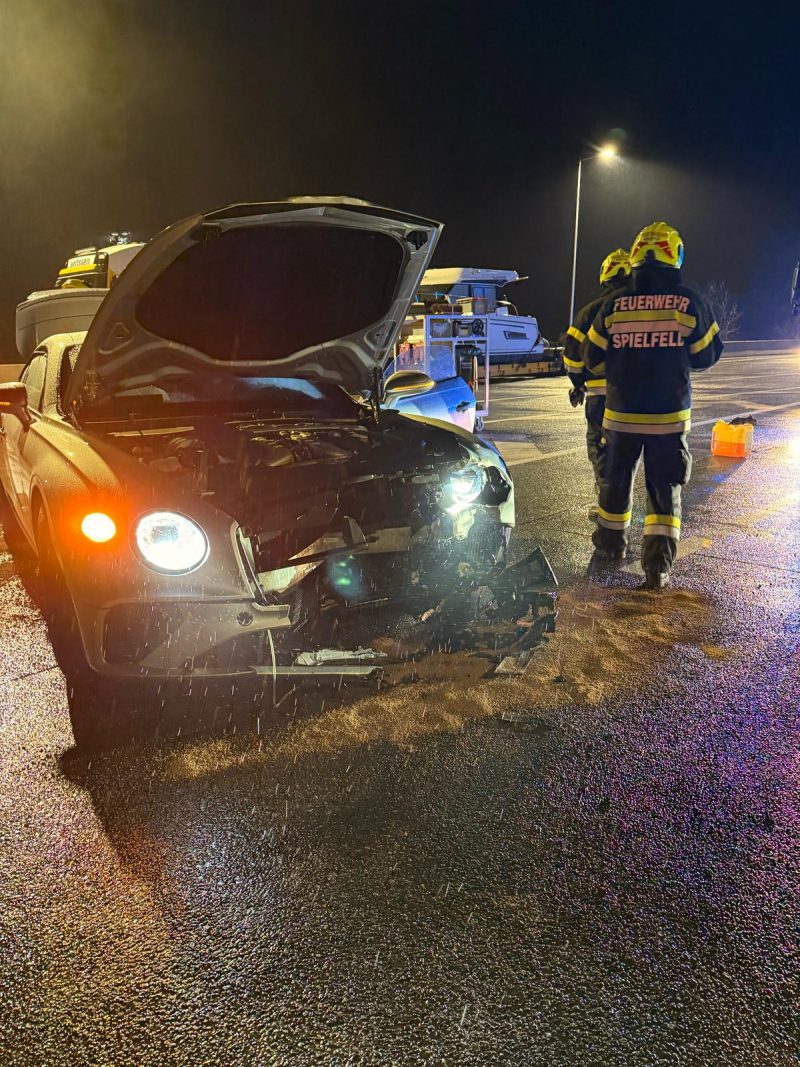 Am 27. Februar 2025 um 01.13 Uhr wurde die Freiwillige Feuerwehr Spielfeld zu einem Verkehrsunfall auf der A9 kurz vor dem Grenzübergang Spielfeld gerufen. Ein PKW war von der Fahrbahn abgekommen und in das Fahrzeugrückhaltesystem Anpralldämpfer gefahren, das Auto wurde dabei beschädigt und der Lenker verletzt . Bei Ankunft der Feuerwehr Spielfeld am Unfallort war die Polizei bereits anwesend und die verletzte Person befand sich nicht mehr im Auto. Die nachkommende Feuerwehr Gersdorf unterstützte die Feuerwehr Spielfeld. Die Feuerwehrkräfte sicherten die Unfallstelle ab, übernahmen den Brandschutz und kümmerten sich um das Auslaufen von Öl. Die verletzte Person wurde vom Rettungsdienst Leibnitz, der kurz danach eintraf, versorgt. Nach dem Eintreffen der zuständigen ASFINAG, die den Abtransport des PKWs veranlasste, rückten die Feuerwehren wieder ins Rüsthaus ein und meldeten sich bei der LLZ wieder Einsatzbereit.