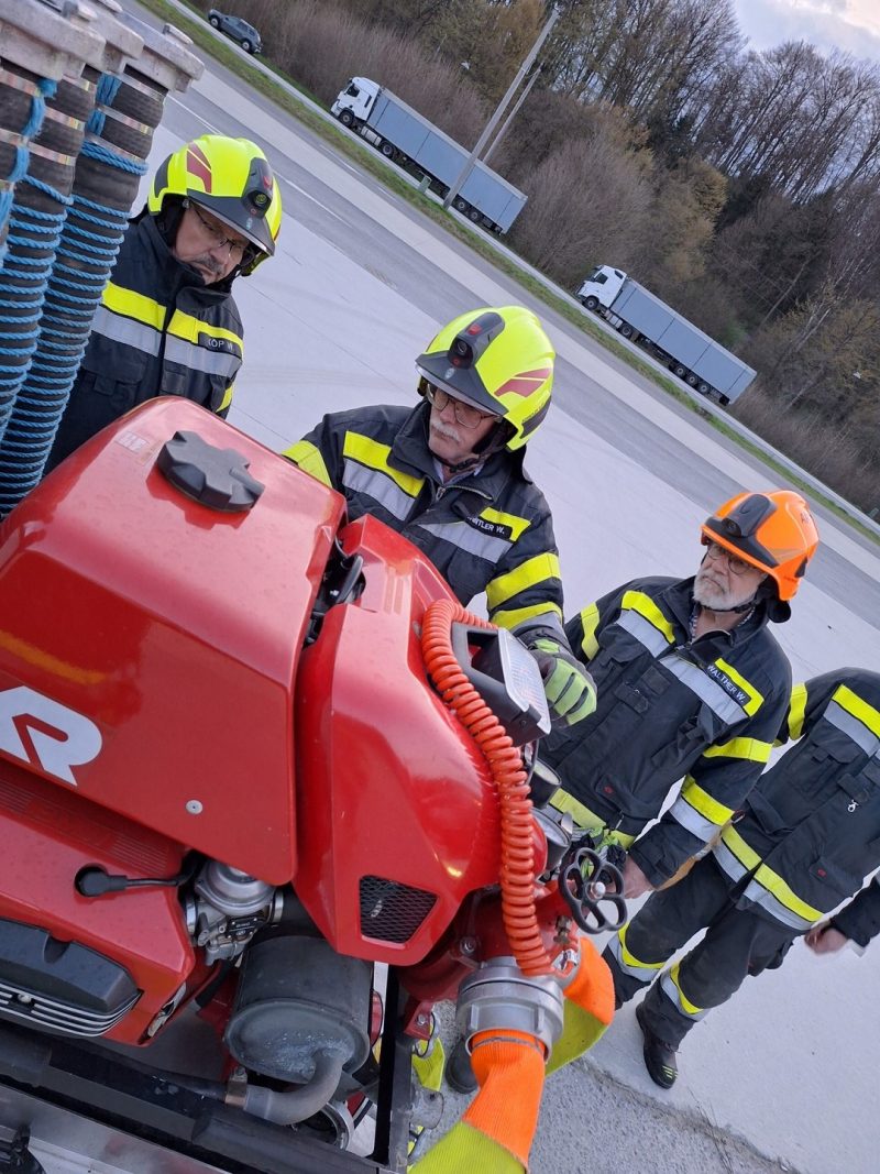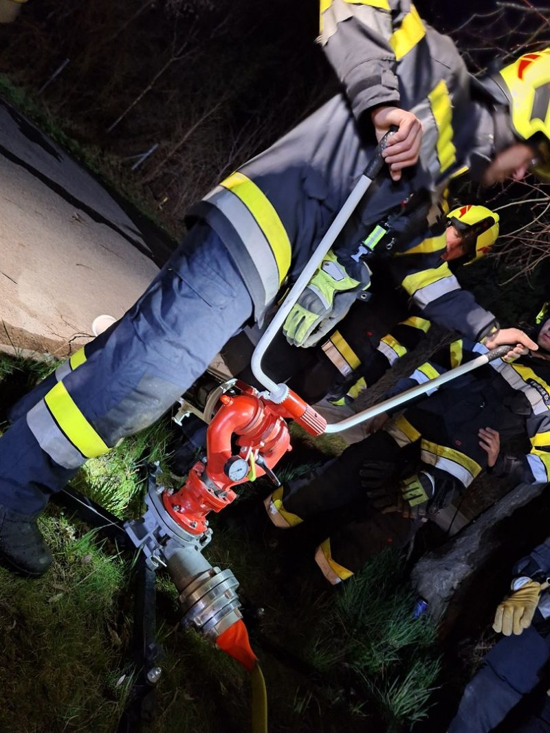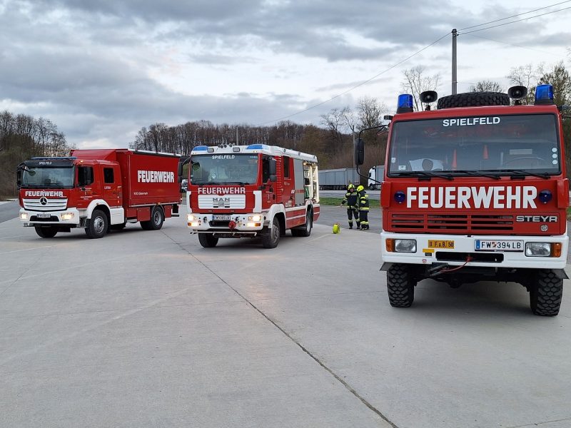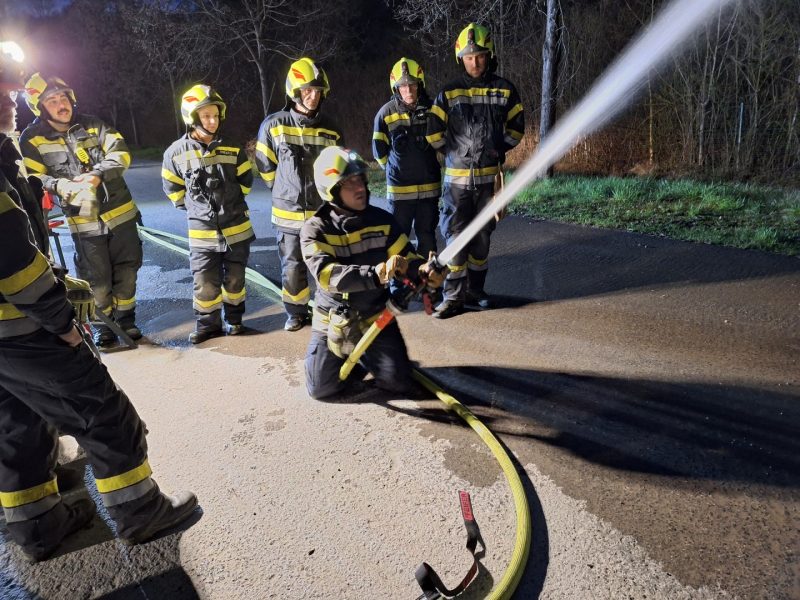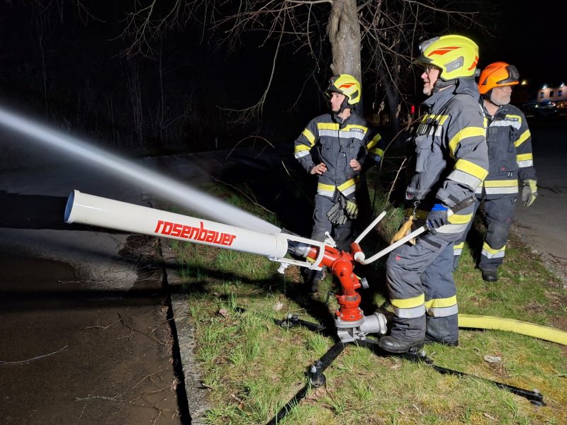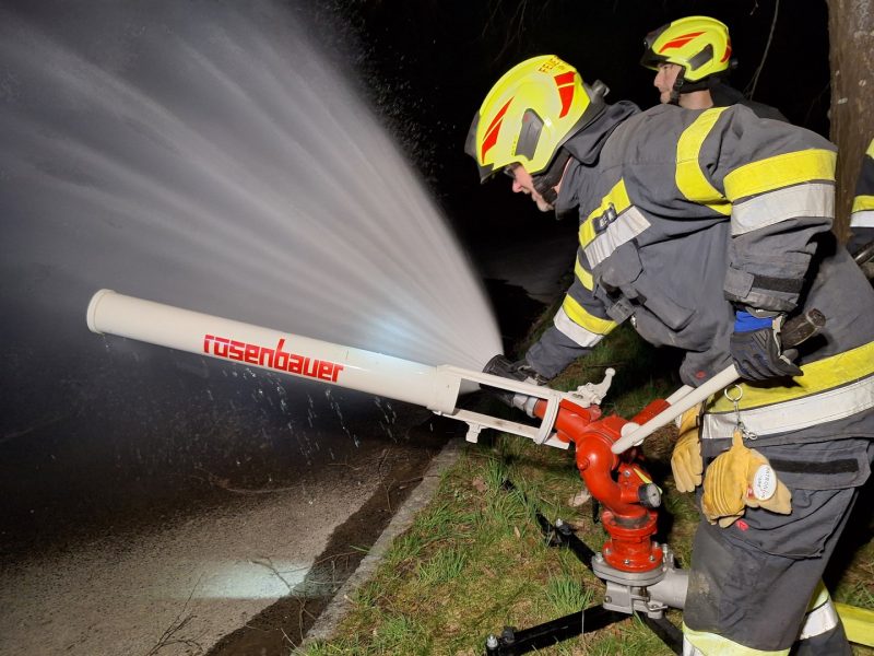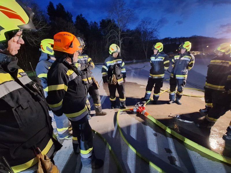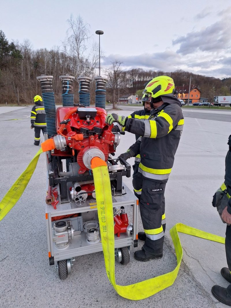 Es waren zuletzt ereignisreiche Tage für die Feuerwehr Spielfeld. Egal ob Gebäudebrand, Baum auf Autotransporter oder etwa ein Verkehrsunfall, die Kameradinnen und Kameraden zeigten vollen Einsatz und hohe Disziplin. Für dieses Engagement gab es im Zuge der Montagsübung großes Lob von Kommandant ABI Michael Hanscheg, der insgesamt 17 Teilnehmer begrüßen konnte. Thema war der Löschangriff über den Hydranten. Für dieses Vorhaben wurde der große Parkplatz vor der Grenze (Oberflurhydranten vor Ort) ausgewählt. Grundsätzliches zur Wasserentnahme aus Hydranten: Auf dem Löschfahrzeug findet man alles, was für die Wasserentnahme aus dem Hydranten notwendig ist. Bei einem Oberflurhydranten braucht man lediglich den passenden Hydrantenschlüssel. Wichtig vor der Inbetriebnahme ist die Spülung des Hydranten um Verunreinigungen entgegenzuwirken. Für den tatsächlichen Löschangriff kam auch die Tragkraftspritze, TS genannt, zum Einsatz. Die Tragkraftspritze gehört zur Grundausstattung unserer Feuerwehr. Bei der Tragkraftspritze handelt es sich um eine motorbetriebene Feuerwehrpumpe. Vorwiegend kommt die Pumpe bei der Löschwasserförderung an der Einsatzstelle zum Einsatz. Zum Schluss hieß es dann nur mehr C-Rohr Wasser Marsch. Als dritter Teil neben dem Aufbau der Versorgungsleitung und durchführen des Löschangriffs stand der Einsatz des Wasserwerfers im Fokus. Ein Wasserwerfer der Feuerwehr ist ein Gerät, das große Mengen Wasser auf einen Brandherd abgibt. Er wird eingesetzt, um Brände zu löschen, benachbarte Gebäude zu schützen und bei Großbränden wie etwa Waldbränden zu helfen. Der tragbare Wasserwerfer ist leicht wie auch kompakt und nach nur wenigen Handgriffen einsatzbereit.