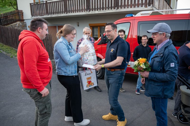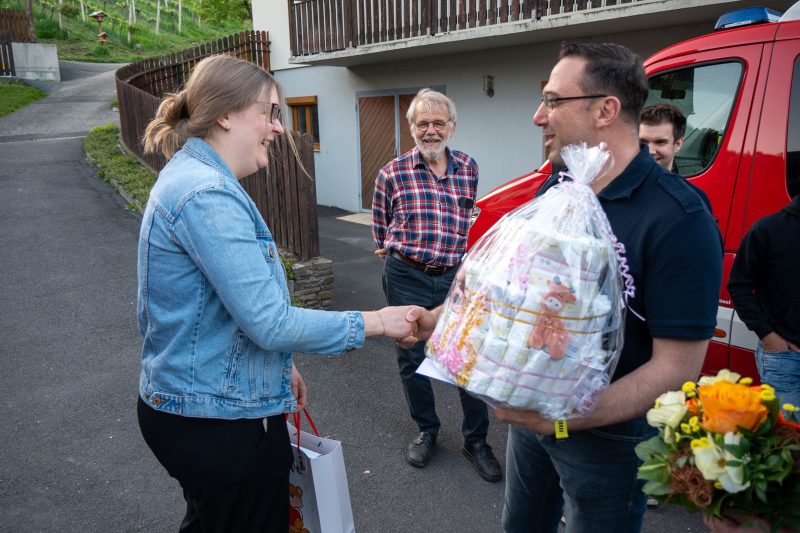 Ben Kugl, ein Mitglied der Feuerwehr Spielfeld, hat kürzlich die Geburt seiner Tochter Thea gefeiert. Um ihn und seine Familie zu ehren, haben die Kameraden der Feuerwehr einen symbolischen Storch aufgestellt, der für das neue Leben und die Freude in der Familie steht. Diese Geste zeigt nicht nur die herzliche Verbundenheit der Gemeinschaft, sondern auch die Unterstützung, die sie einander in wichtigen Lebensmomenten bieten. Zusätzlich überreichten die Kameraden eine Windeltorte, ein praktisches und liebevoll gestaltetes Geschenk, das aus Windeln und anderen Babyutensilien besteht. Solche Geschenke sind sowohl nützlich für die frischgebackenen Eltern als auch ein schöner Ausdruck der Freude und des Zusammenhalts innerhalb der Gemeinschaft. Die Kameraden gratulieren dem frischgebackenen Familienvater, Ben, zu seiner Tochter und zeigen damit ihre Freude über den neuen Familienzuwachs.