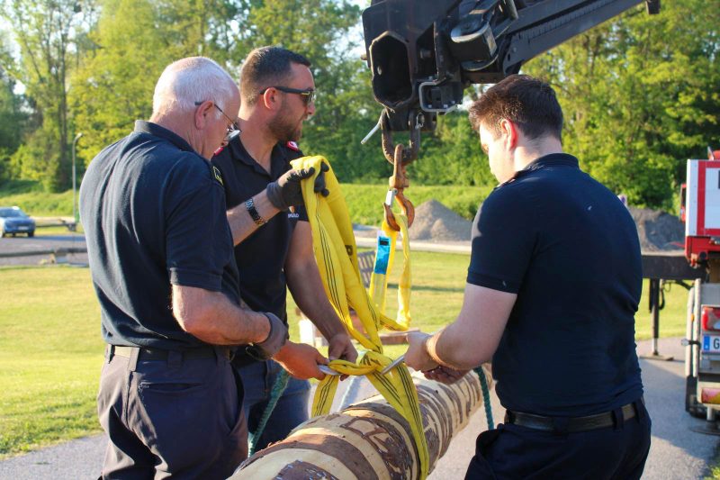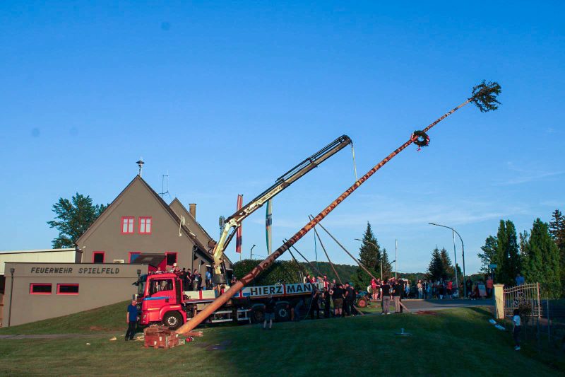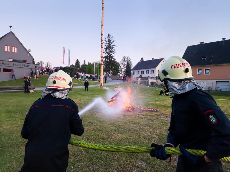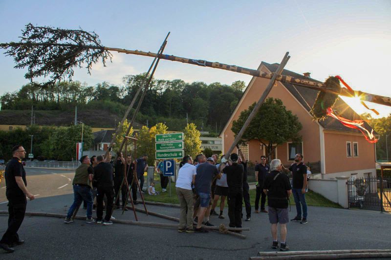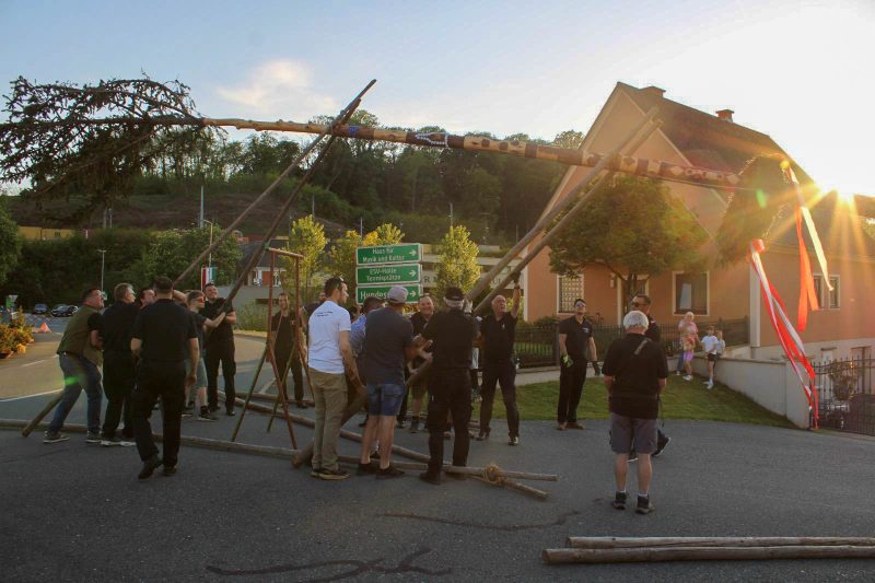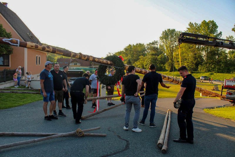 Am 30. Mai 2025 um 18:00 Uhr fand am Vorplatz des Rüsthauses in Spielfeld das traditionelle Maibaumaustellen der Freiwilligen Feuerwehr Spielfeld statt. Hirzmann Transport und Kranarbanarbeiten hat die Freiwillige Feuerwehr Spielfeld bei ihrem jährlichen Maibaum-Aufstellen unterstützt. Mit ihrem Kran haben sie die Feuerwehrleute dabei geholfen, den schweren Baum sicher und effizient aufzustellen. Die Veranstaltung wurde von zahlreichen Bürgerinnen und Bürgern aus der Gemeinde besucht. Die Schnitzarbeiten am Maibaum wurden von Werner Schintler und Martin Tretnjak meisterhaft ausgeführt. Ihr handwerkliches Geschick und die liebevolle Gestaltung des Baumes wurden von allen Anwesenden bewundert. Die musikalische Umrahmung der Feierlichkeiten übernahm der Musikverein Spielfeld, der mit festlichen Klängen für eine heitere Atmosphäre sorgte. Ein besonderes Highlight des Abends war die Vorführung der Jugendfeuerwehr Spielfeld, die mit beeindruckenden Darbietungen das Publikum begeisterte und den Nachwuchs der Feuerwehr in Aktion präsentierte. Der Kommandant ABI Michael Hanscheg konnte zahlreiche Gäste aus Spielfeld herzlich willkommen heißen und betonte die Bedeutung solcher Veranstaltungen für das Gemeinschaftsgefühl und die Tradition im Ort. Für das leibliche Wohl war ebenfalls bestens gesorgt, so dass sich die Besucher mit köstlichen Speisen und Getränken stärken konnten. Insgesamt war das Maibaumaustellen ein gelungenes Fest, das die Verbundenheit der Gemeinde und das Engagement der Feuerwehr eindrucksvoll unter Beweis stellte.