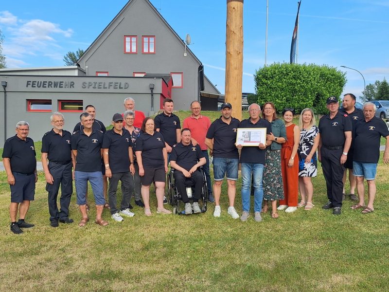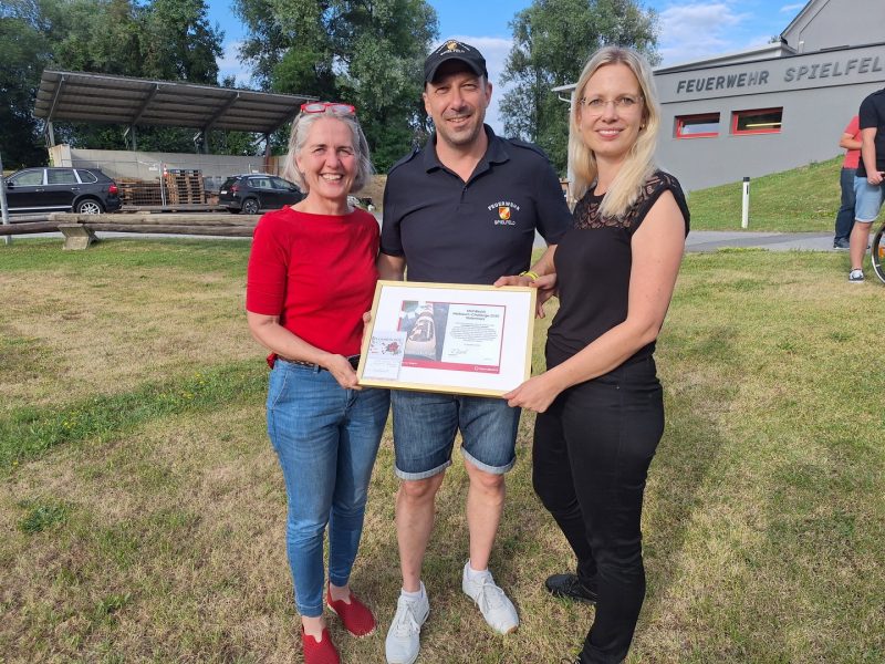 Mitte Mai standen die Finalisten der Maibaum-Challenge von MeinBezirk 2025 fest. Die FF Feuerwehr Spielfeld erreichte sensationell im Bezirk Leibnitz vor der FF Maltschach den ersten Rang und nahm somit im Landesfinale teil. Dort traten wiederum 13 Feuerwehren gegeneinander an, es hieß also voten, voten und wieder voten. Die Abstimmung wurde mit 1. Juni, 23.59 Uhr geschlossen, mit mehreren Videos gaben die südsteirischen Kameraden alles, um den Sieg nach Hause zu holen. Am Ende gab es ein wahres Fotofinish zwischen den beiden Feuerwehren Wildalpen und Spielfeld. Für die Letzteren gab es am Ende stolze 5.084 Stimmen, etwa 100 Stimmen mehr hatte die FF Wildalpen. Somit ging der Spargutschein im Wert von 500 Euro in die östlichste Gemeinde des Bezirks Liezen. Gefreut haben sich aber auch die Kameraden der FF Spielfeld. Denn auch für sie gab es einen Gutschein im Wert von 250 Euro. Übergeben wurde der Gutschein kürzlich von Mag. Martina Schweiggl (Contentmanagerin bei MeinBezirk Graz) und Waltraud Fischer, Redaktionsleiterin von MeinBezirk Leibnitz. Beide freuten sich über den großartigen Erfolg und outeten sich während ihres Besuchs als Fans der FF Spielfeld. „Die Schnitzkunst ist hervorragend“, schwärmte etwa Fischer über den Maibaum. Geschnitzt wurde der Maibaum traditionell von Werner Schintler, ihm zur Seite stand Martin Tretnjak. Noch ein kleiner Hinweis: Am 2. August 2025 mit Beginn um 19 Uhr findet in der ESV-Halle Spielfeld das traditionelle Feuerwehrfest statt. Für die musikalische Umrahmung sorgt die Gruppe „Steirermen“.