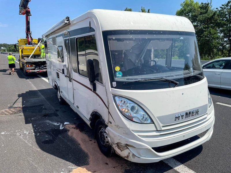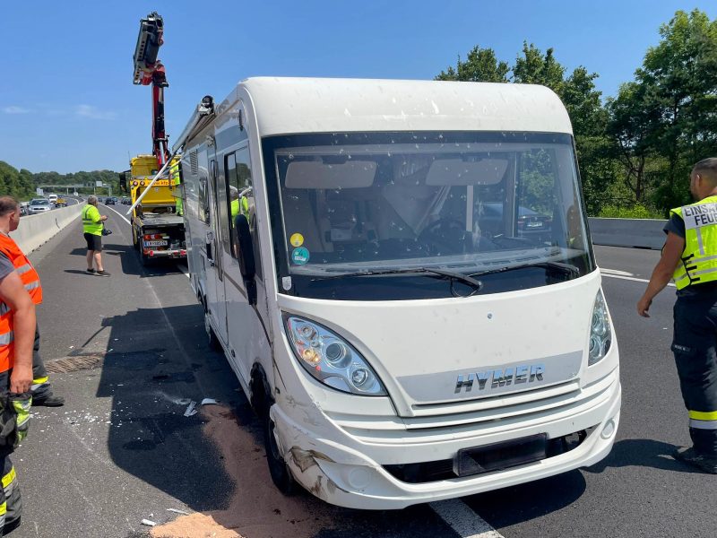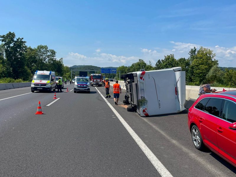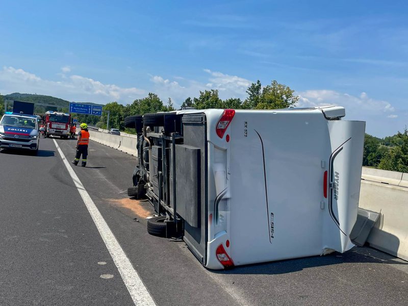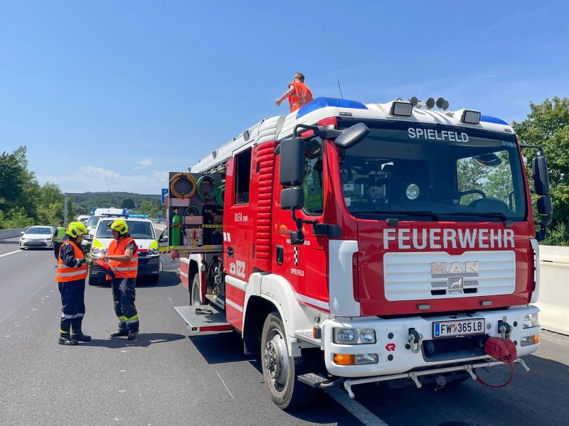 Sirenenalarm am 06.07.2025 um 11:22 Uhr für FF Spielfeld, Alarmstichwort T03-Verkehrsunfall mit verletzter Person auf der A9 Pyhrn in Fahrtrichtung Linz zwischen Spielfeld und Gersdorf an der Mur, Wohnmobil überschlagen. Verletzte Personen nicht mehr im Fahrzeug. Sofort rückte die FF Spielfeld mit 12 Mann und 2 Einsatzfahrzeugen aus. Die FF Gersdorf wurde gleichzeitig alarmiert und rückte mit 9 Mann und zwei Einsatzfahrzeugen zum Einsatzort aus. Am Einsatzort angekommen erkundete Michael Rode als Einsatzleiter die Lage am Einsatzort. Hier wurden zwei verunfallte Fahrzeuge vorgefunden. Eine verletzte Person wurde halb drinnen halb draußen beim Stehenden PKW vorgefunden und die zweite Person saß auf dem umgestürzten Wohnmobil. Sofort wurde von den angekommenen Feuerwehren mit der Rettung der Personen begonnen. Die Absicherung übernahm die Polizei und Asfinag, die in der Zwischenzeit am Einsatzort eintraf. Eine Mannschaft der beiden Feuerwehren baute einen doppelten Brandschutz auf. Die Rettung der beiden verletzen Personen musste über einen Leiterweg durchgeführt werden. Die verunfallten Personen wurden nach Bergung und Erstversorgung durch die Feuerwehren Gersdorf und Spielfeld, dem Notarzt und Rotem Kreuz übergegen, die darauffolgend die beiden Personen in das nächstgelegen Krankenhaus transportierten. Weiters wurden von den beiden Feuerwehren mit dem Binden der ausgelaufenen Betriebsmittel und den Einsammeln der herumliegenden Fahrzeugteile begonnen. Nach Eintreffen eines Abschleppunternehmens unterstützten die beiden Feuerwehren beim Aufstellen und aufladen der verunfallten Fahrzeuge. Die FF Spielfeld bedankt sich bei der FF Gersdorf, der Polizei, ASFINAG und dem Roten Kreuz mit Notarz, für die professionelle Zusammenarbeit.