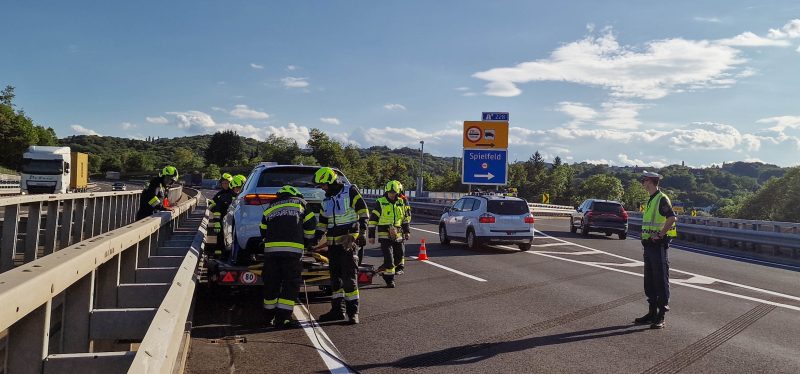 Am 30.07.2025 um 17:41 Uhr wurde die Freiwillige Feuerwehr Spielfeld zu einem Verkehrsunfall auf der A9 in Richtung Staatsgrenze alarmiert. Mit dem RLF-A und dem LKW-A wurde zum Einsatzort ausgerückt. Die Polizei und die Freiwillige Feuerwehr Gersdorf an der Mur waren bereits vor Ort. Ein PKW mit Anhänger, beladen mit einem Audi, hatte sich selbstständig gemacht und verkeilte sich in der Leitschiene. Glücklicherweise gab es keine Verletzten, aber der Verkehr wurde für einige Zeit beeinträchtigt. Der Anhänger mit dem aufgeladenen Audi musste mit der Seilwinde des RLF-A herausgezogen werden. Nachdem der PKW und der Anhänger sicher entfernt worden waren, konnte die Autobahn wieder freigegeben werden. Die Zusammenarbeit der verschiedenen Rettungskräfte war entscheidend für eine schnelle und effektive Lösung des Problems. Die Freiwillige Feuerwehr Spielfeld und Gersdorf an der Mur zeigten einmal mehr ihre Professionalität und Einsatzbereitschaft bei solchen Notfällen.