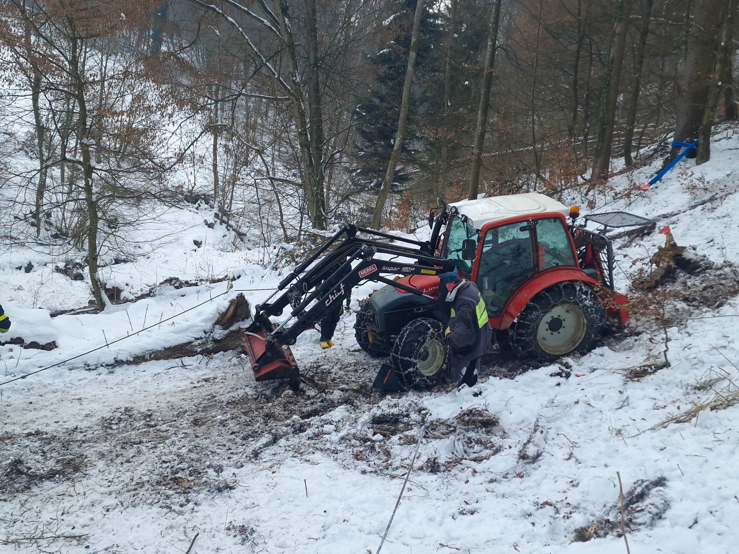 Am 15. Januar 2026 um 10:46 Uhr wurde die Feuerwehr Spielfeld mittels Sirenenalarm zum Einsatz gerufen. Im Waldgebiet am Obegg in Spielfeld kippte ein Traktor um und musste geborgen werden. Die Feuerwehr rückte mit dem Rüstlöschfahrzeug RLF-A2000 und dem LKW-A zum Unfallort aus. Kommandant ABI Michael Hanscheg verschaffte sich sofort einen Überblick über die Lage. Für die Bergung wurde die Seilwinde des RLF-A2000 eingesetzt, wobei der Greifzug als Gegenzug diente. Dank sorgfältiger Arbeit konnte der Traktor ohne größere Schäden wieder aufgestellt werden. Glücklicherweise wurde bei dem Unfall und der Bergung niemand verletzt. Nach Abschluss der Arbeiten kehrte die Feuerwehr Spielfeld um 13:30 Uhr zurück ins Rüsthaus, reinigte die Ausrüstung und meldete sich um 13:50 Uhr wieder einsatzbereit bei der Landesleitzentrale.