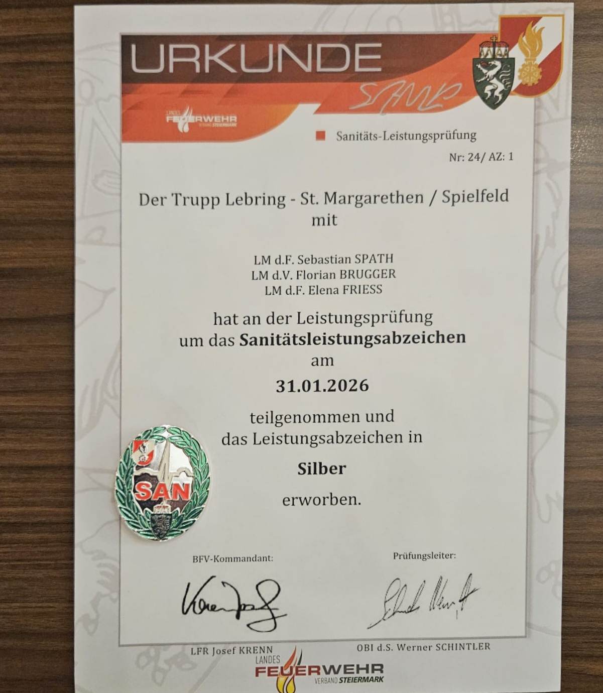 Am 31.01.2026 fand die Sanitäts-Leistungsprüfung des Bereichsfeuerwehrverbandes Leibnitz und Deutschlandsberg in der Volksschule Linden statt.