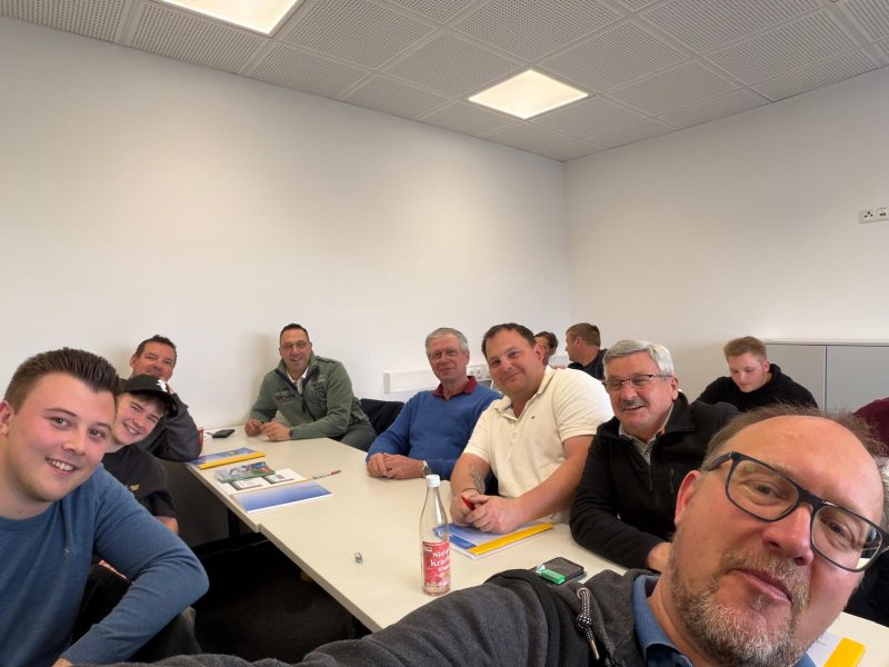Normen und Richtlinien zum Führen von Staplern, Vorbereitung zur Prüfung und praktische Übungen. Die teilnehmenden Florianis: Kommandant Michael Hanscheg, Organisator Patrick Tischler, Karl Schlager, Werner Köp, Josef Passat-Grupp, Simon Skargeth, Johannes Hanscheg und Markus Bolte.