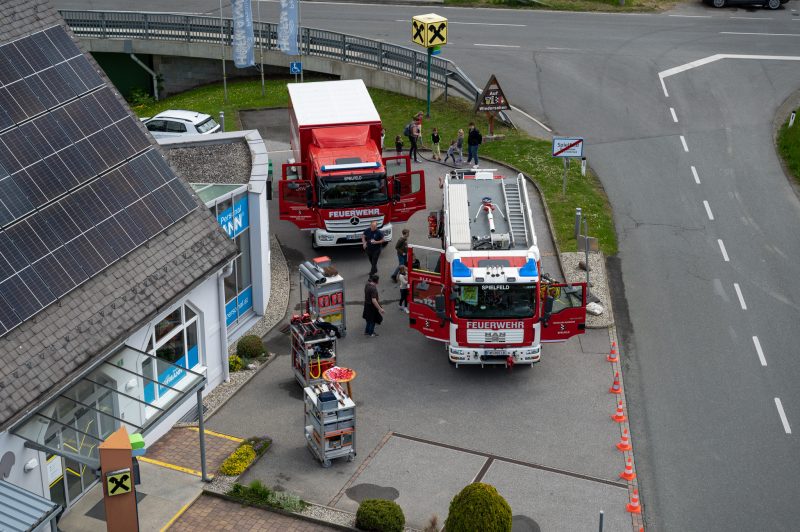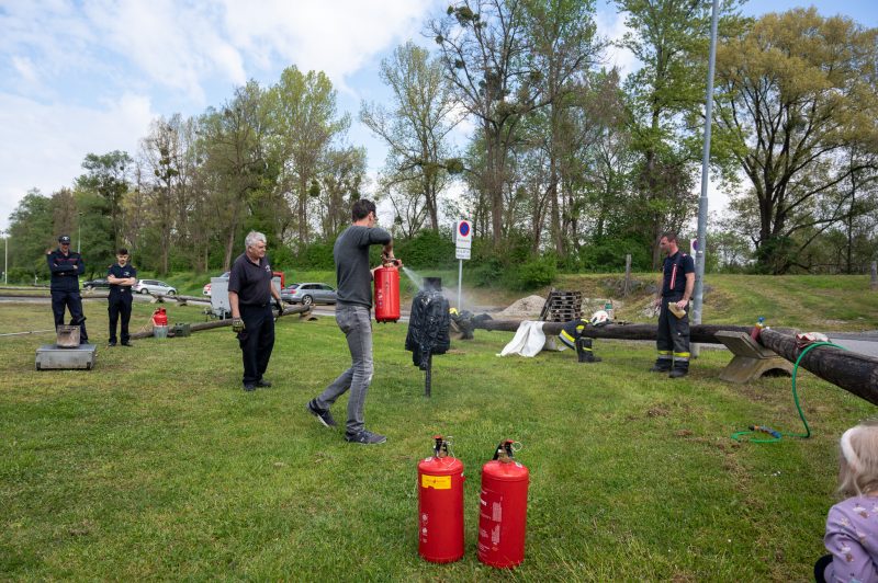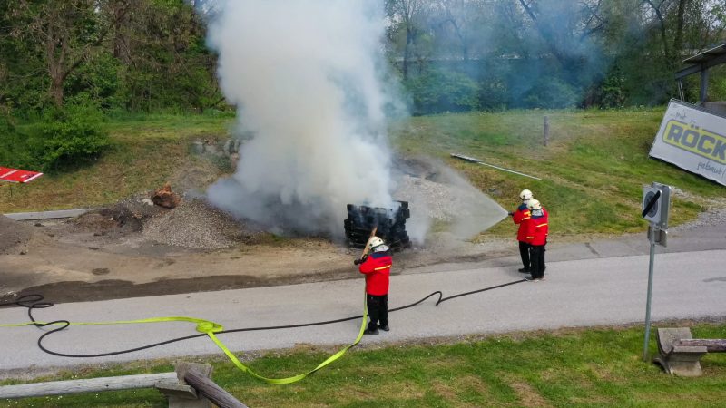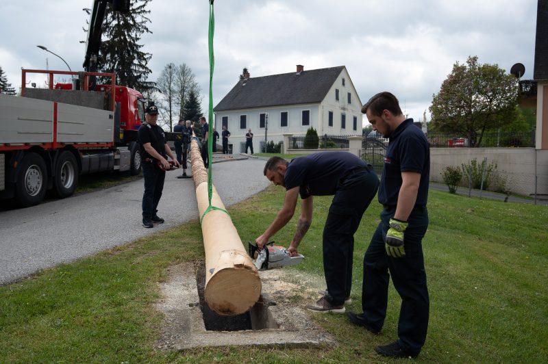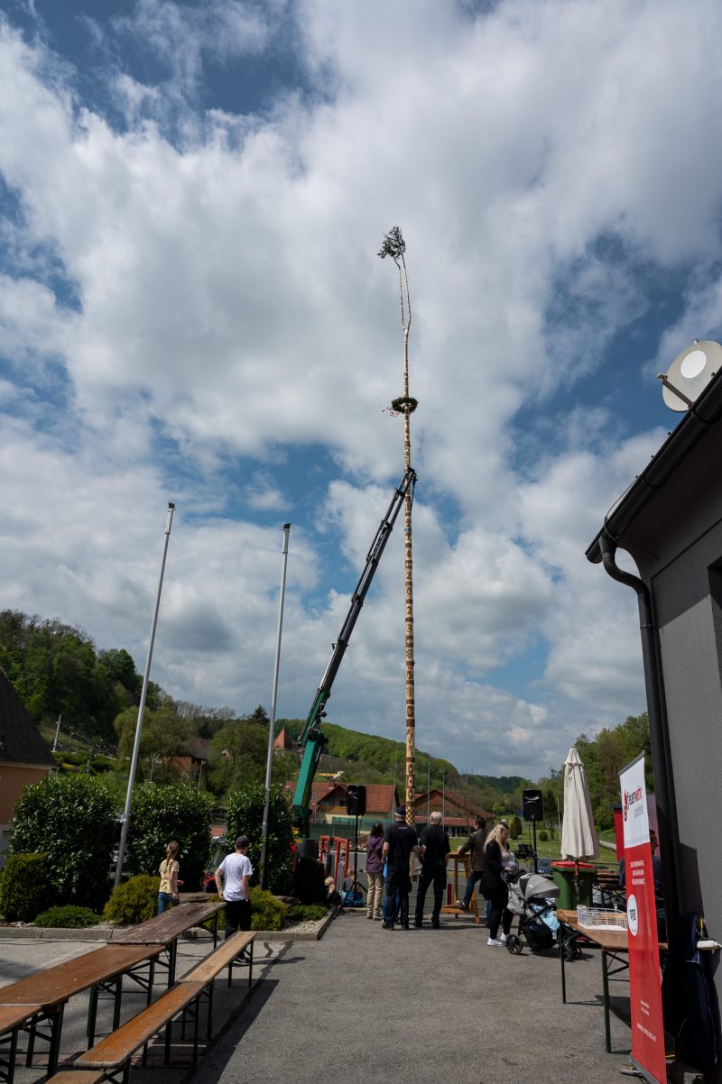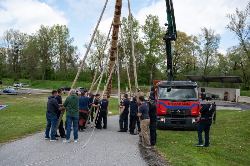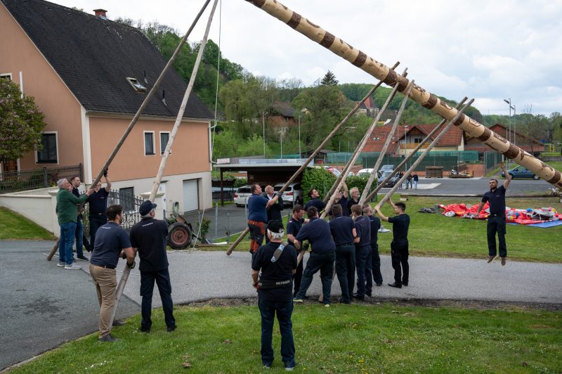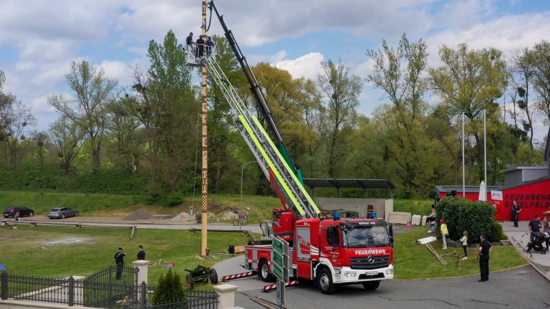 Traditionell am 30. April hat auch die Feuerwehr Spielfeld ihren Maibaum mit (fast) purer Manneskraft aufgestellt. Unterstützung erhielten Sie von der Fa. Hirzmann mit ihrem Krahn. Ohne Zwischenfälle stand nach einiger Zeit der rund 36 Meter hohe Baum am Platz vor dem Rüsthaus der FF Spielfeld. Gespendet wurde der Baum von der Familie Buschenschank Trummer. Musikalisch unterstütz wurde auch das Maibaumaufstellen vom Musikverein Spielfeld. Die zahlreichen Gäste wurden dabei mit unterschiedlichsten Speisen verköstigt und konnten bei der anschließenden Verlosung mit ein wenig Glück einen der tollen Preise und den Maibaum gewinnen. Die Freiwillige Feuerwehr der Stadt Leibnitz stellte ihre Drehleiter zur Schau und einige Besucher hatten auch die Möglichkeit mit der Drehleiter aus schwindelten Höhe das Geschehen zu beobachten. Eine FF-Gruppe mit ABI Daniel Petrovic führten eine Fettbrand-Bekämpfung vor, wo Interessierte Besucher selbst einen Feuerlöscher in die Hand nehmen durften um das Feuer zu löschen. Danach gab es von der Jugendfeuerwehr ein Szenarium, wo ein Holzstapelbrand gelöscht wurde. Für musikalisch Stimmung der Besucher sorgte die ONE MAN BAND Martin Leitinger. Die FF Spielfeld bedankt sich bei den zahlreichen Besuchern des traditionellen Maibaumaufstellens.