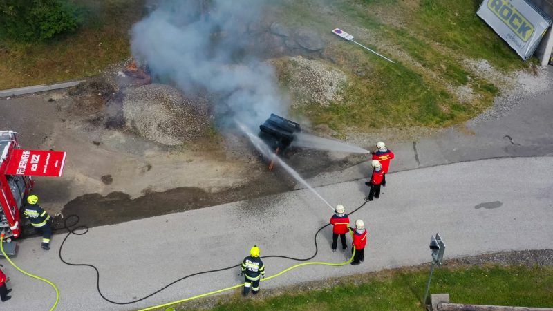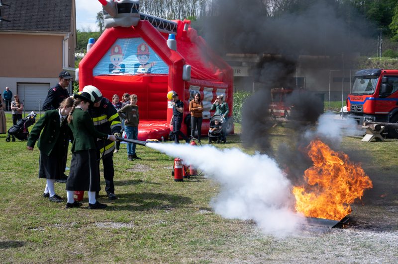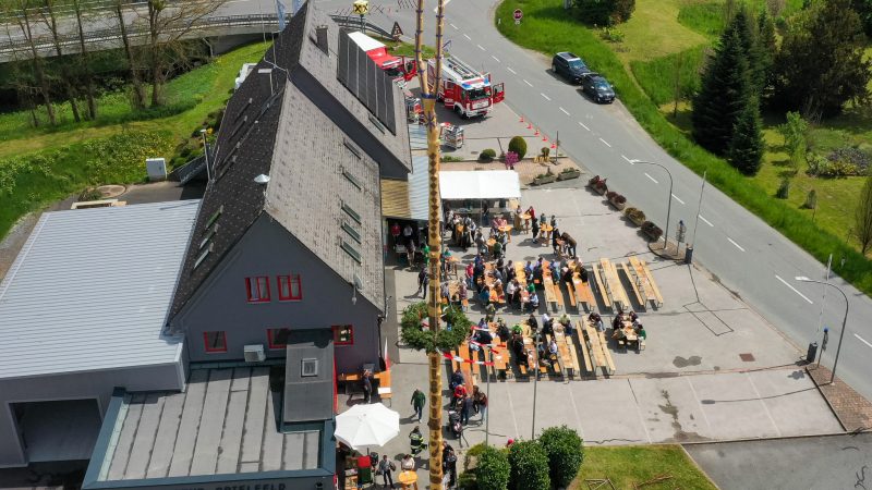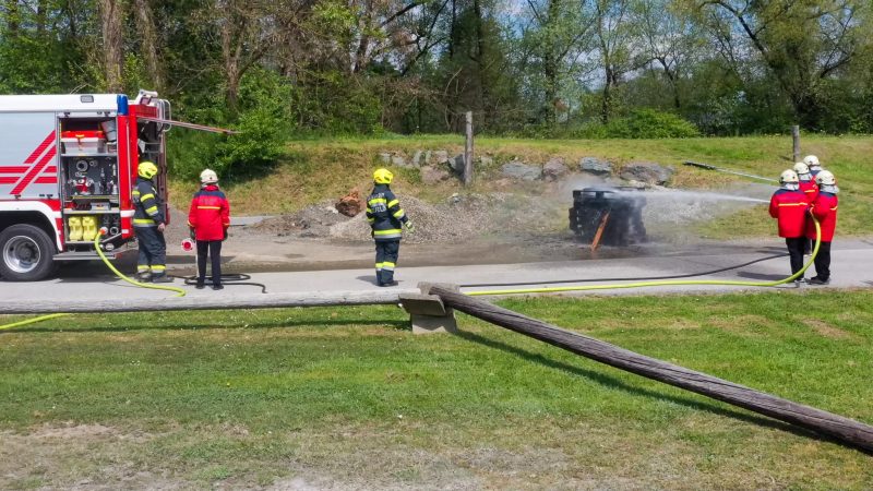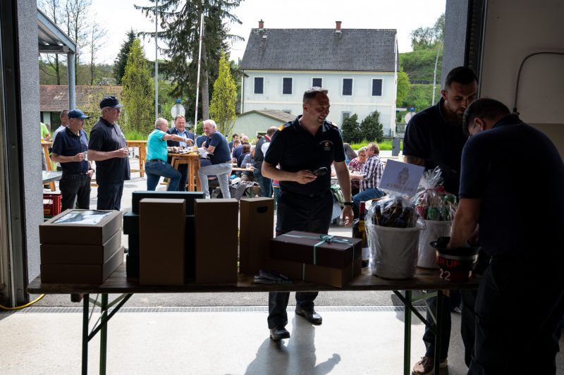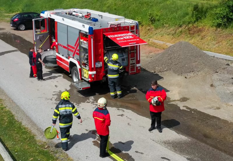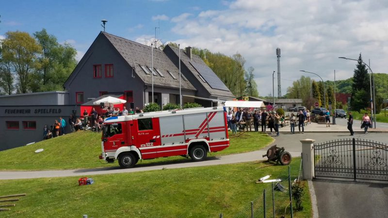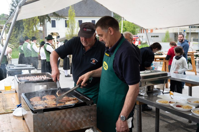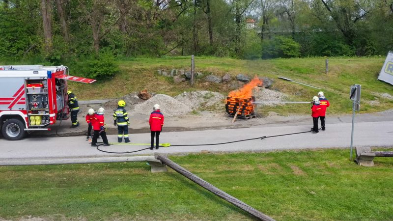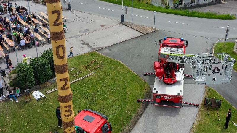 Traditionell am 30. April hat auch die Feuerwehr Spielfeld ihren Maibaum mit (fast) purer Manneskraft aufgestellt. Unterstützung erhielten Sie von der Fa. Hirzmann mit ihrem Krahn. Ohne Zwischenfälle stand nach einiger Zeit der rund 36 Meter hohe Baum am Platz vor dem Rüsthaus der FF Spielfeld. Gespendet wurde der Baum von der Familie Buschenschank Trummer. Musikalisch unterstütz wurde auch das Maibaumaufstellen vom Musikverein Spielfeld. Die zahlreichen Gäste wurden dabei mit unterschiedlichsten Speisen verköstigt und konnten bei der anschließenden Verlosung mit ein wenig Glück einen der tollen Preise und den Maibaum gewinnen. Die Freiwillige Feuerwehr der Stadt Leibnitz stellte ihre Drehleiter zur Schau und einige Besucher hatten auch die Möglichkeit mit der Drehleiter aus schwindelten Höhe das Geschehen zu beobachten. Eine FF-Gruppe mit ABI Daniel Petrovic führten eine Fettbrand-Bekämpfung vor, wo Interessierte Besucher selbst einen Feuerlöscher in die Hand nehmen durften um das Feuer zu löschen. Danach gab es von der Jugendfeuerwehr ein Szenarium, wo ein Holzstapelbrand gelöscht wurde. Für musikalisch Stimmung der Besucher sorgte die ONE MAN BAND Martin Leitinger. Die FF Spielfeld bedankt sich bei den zahlreichen Besuchern des traditionellen Maibaumaufstellens.